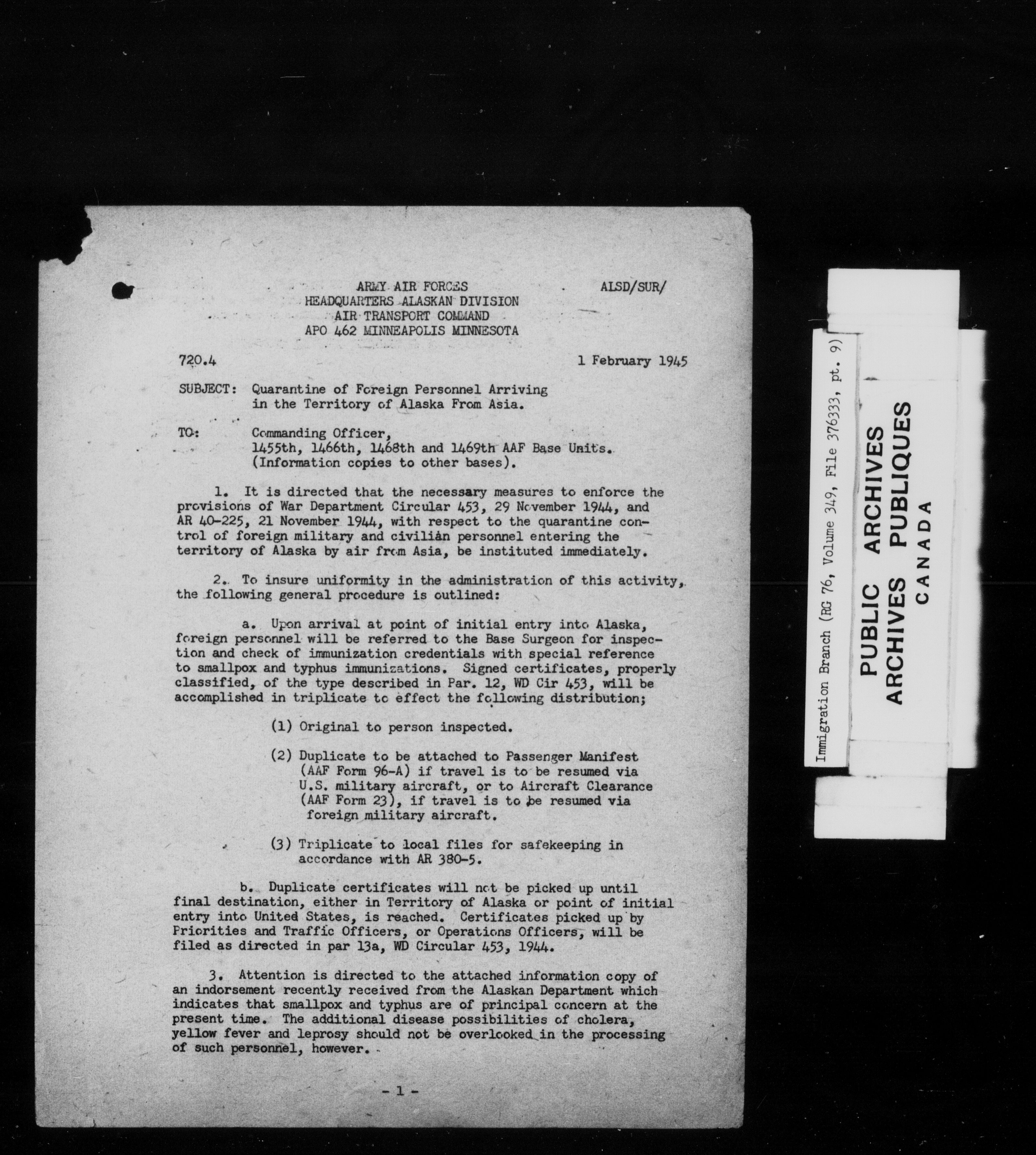 Subject, policy and case files in the First Central Registry series of the Immigration Program, 1892-1950 - 10255