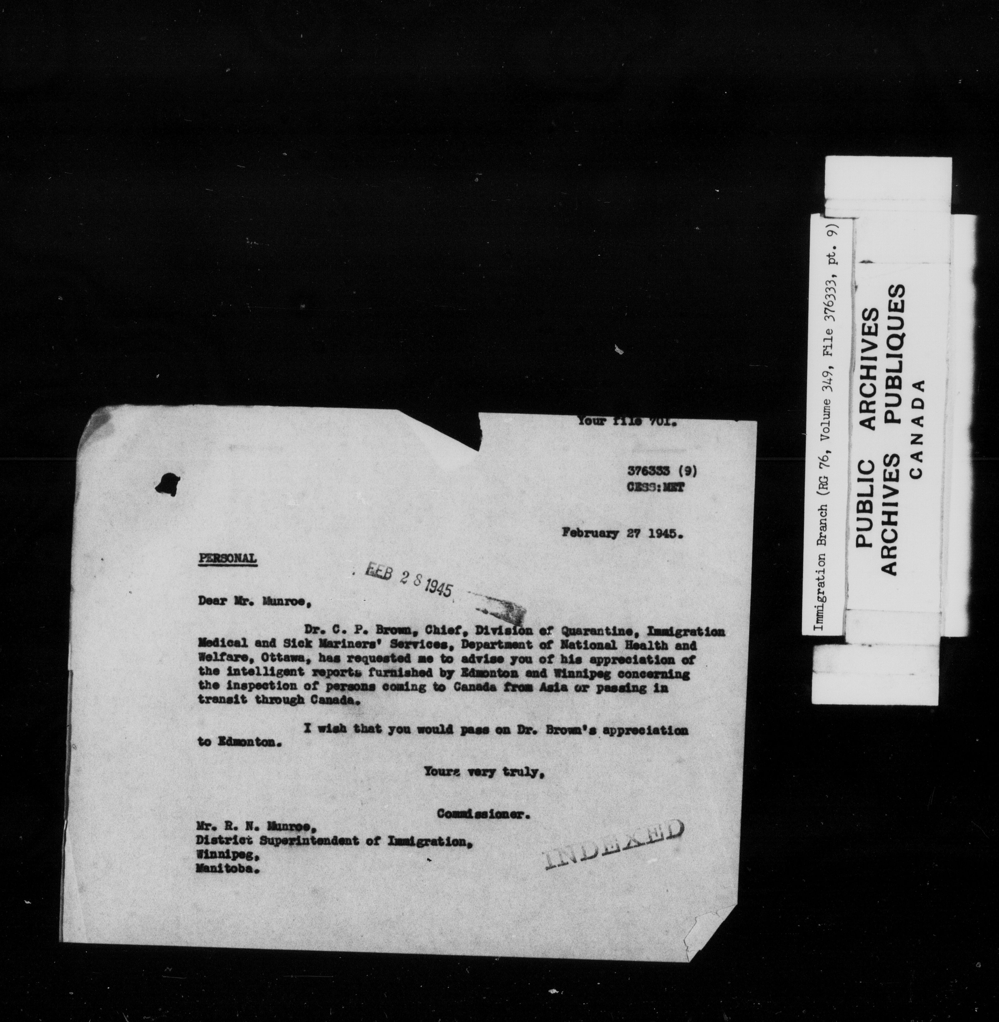 Subject, policy and case files in the First Central Registry series of the Immigration Program, 1892-1950 - 10255