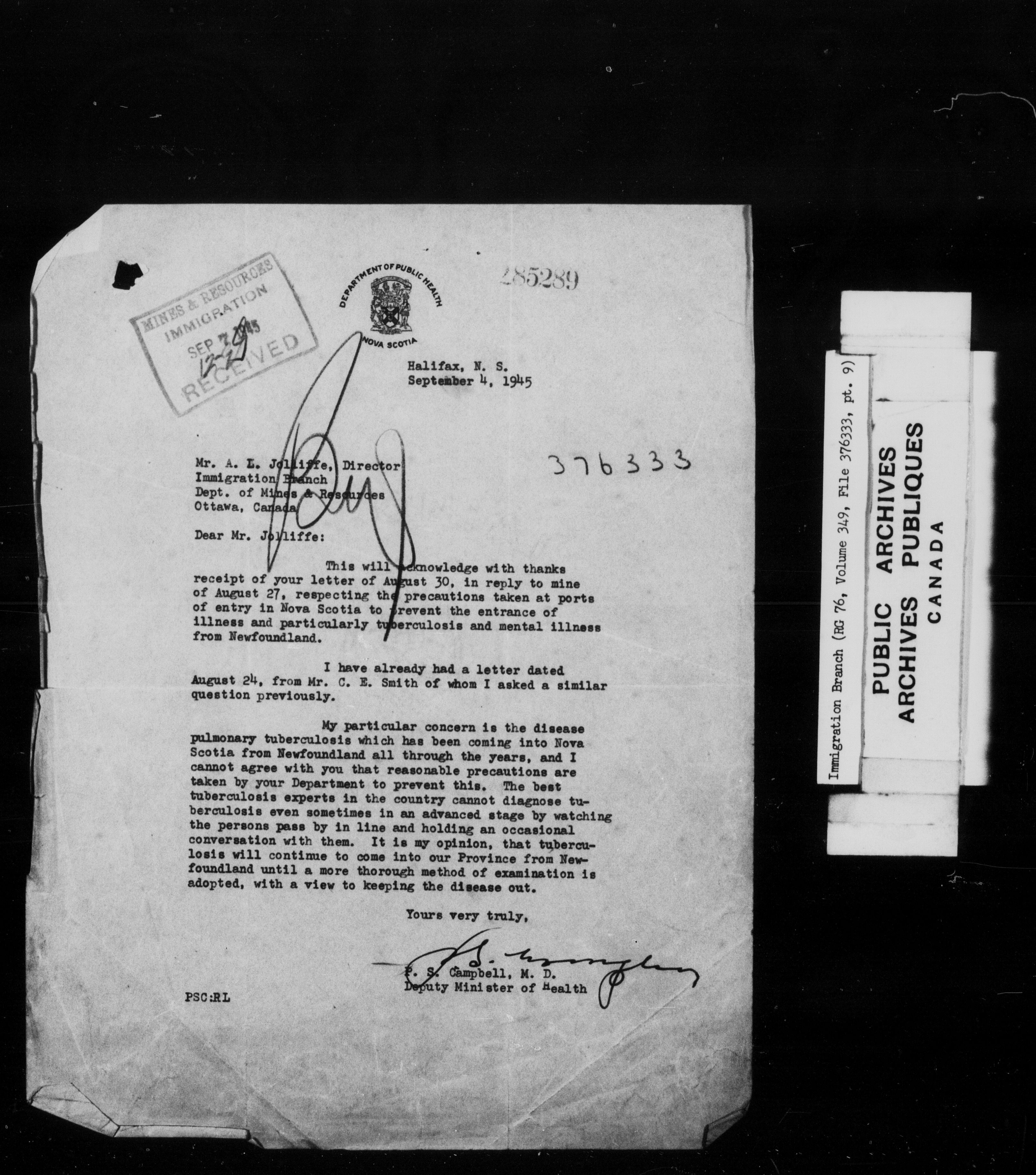 Subject, policy and case files in the First Central Registry series of the Immigration Program, 1892-1950 - 10255