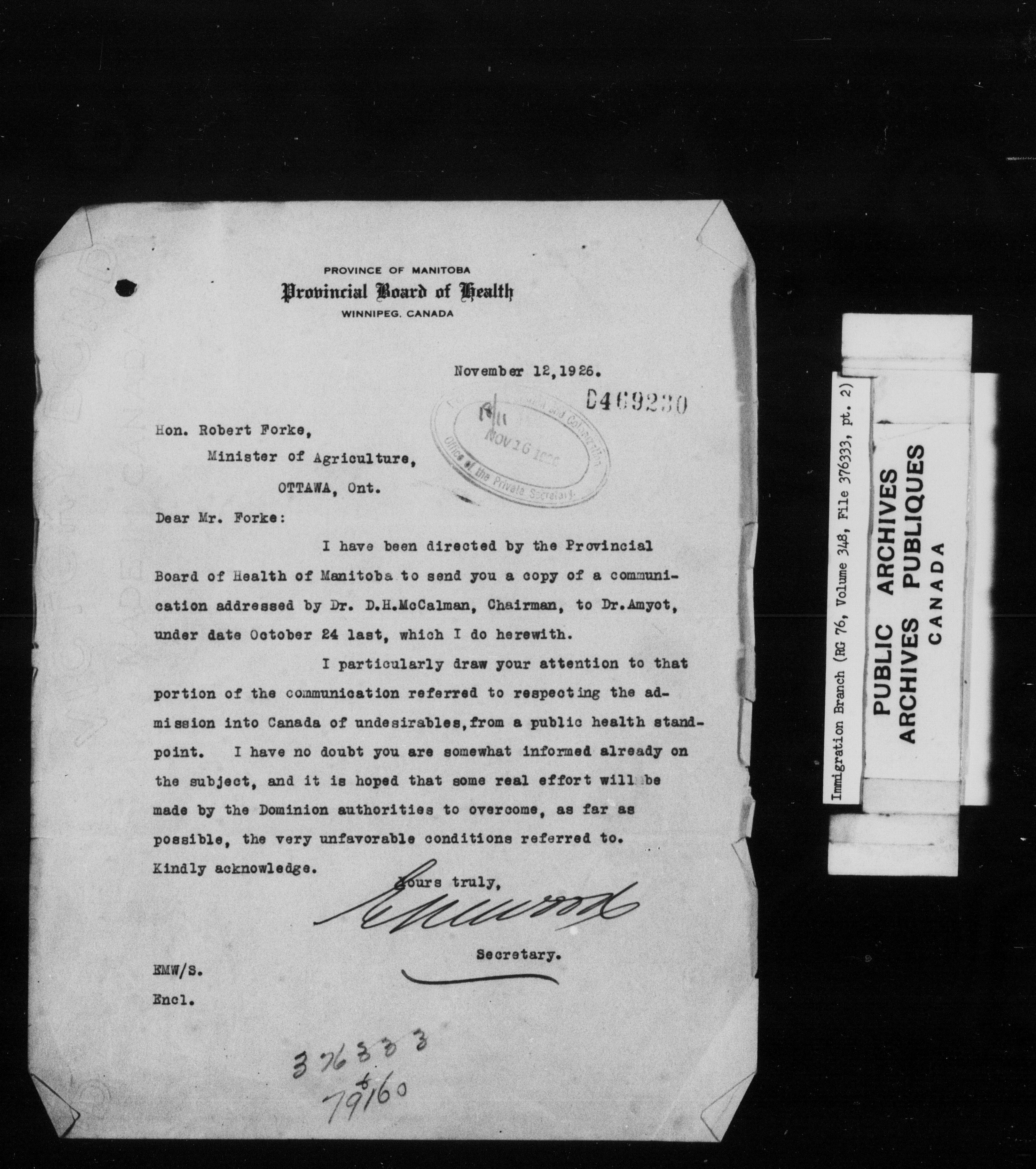 Subject, policy and case files in the First Central Registry series of the Immigration Program, 1892-1950 - 10255