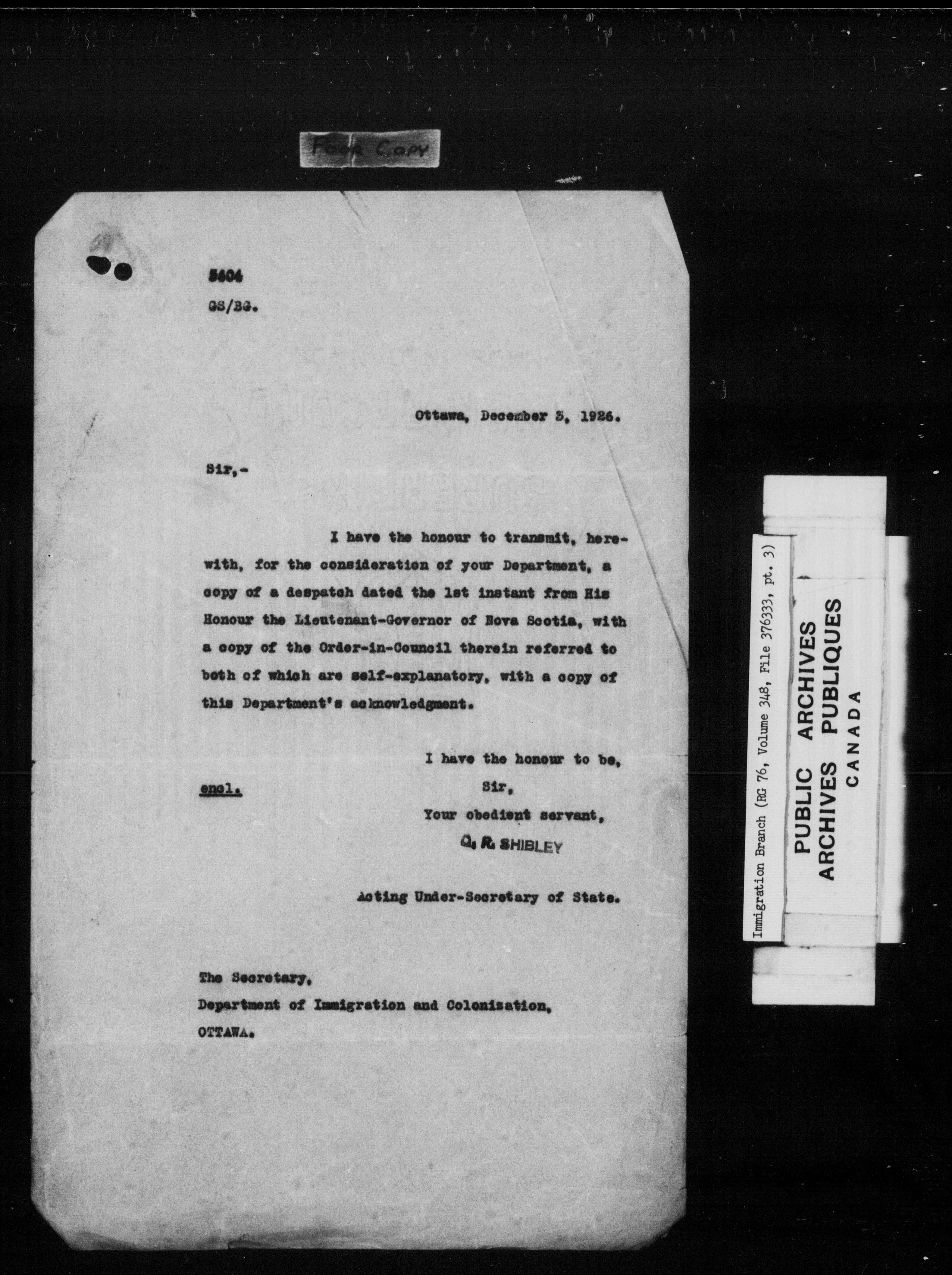 Subject, policy and case files in the First Central Registry series of the Immigration Program, 1892-1950 - 10255
