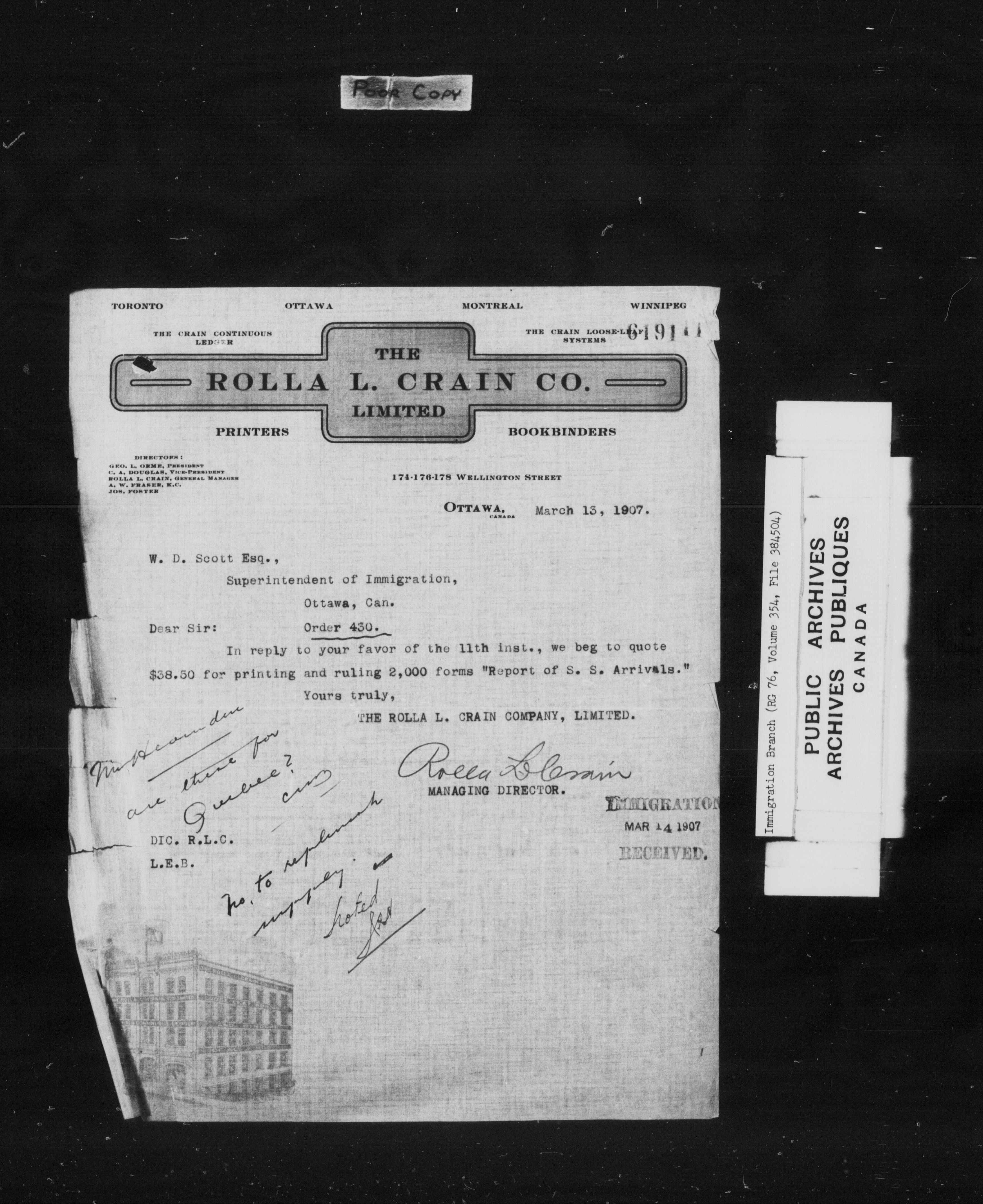 Subject, policy and case files in the First Central Registry series of the Immigration Program, 1892-1950 - 10259
