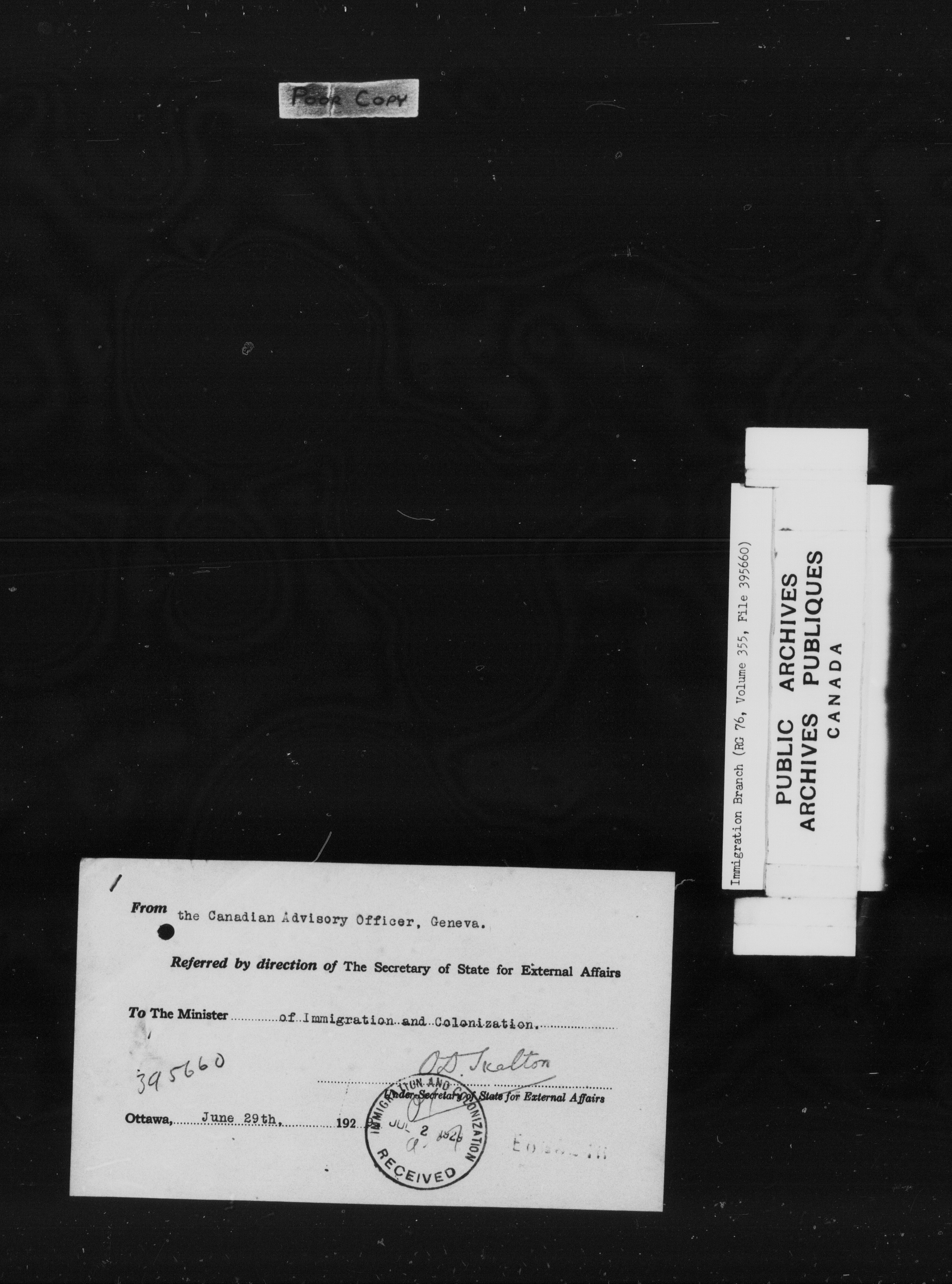 Subject, policy and case files in the First Central Registry series of the Immigration Program, 1892-1950 - 10259