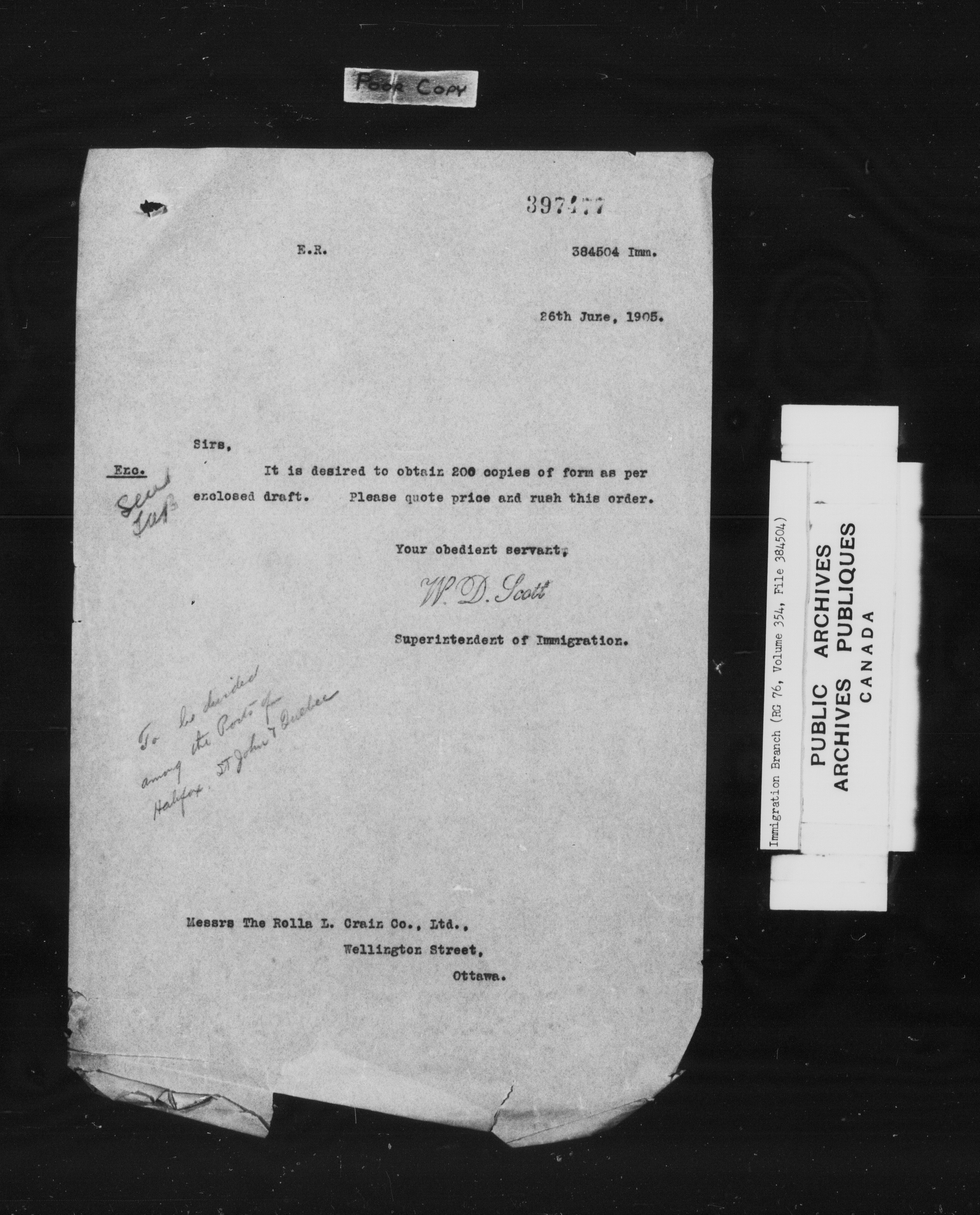 Subject, policy and case files in the First Central Registry series of the Immigration Program, 1892-1950 - 10259