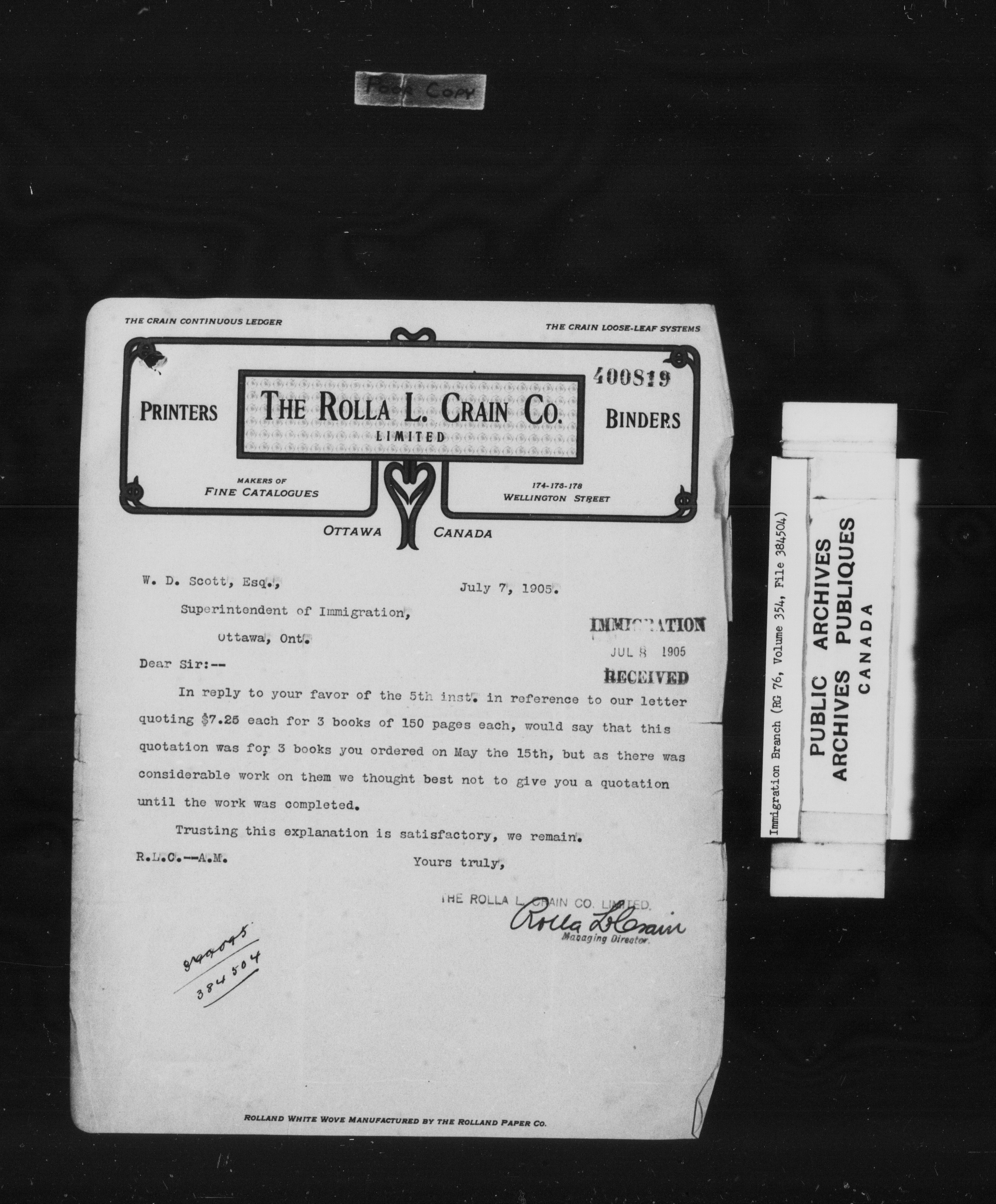 Subject, policy and case files in the First Central Registry series of the Immigration Program, 1892-1950 - 10259