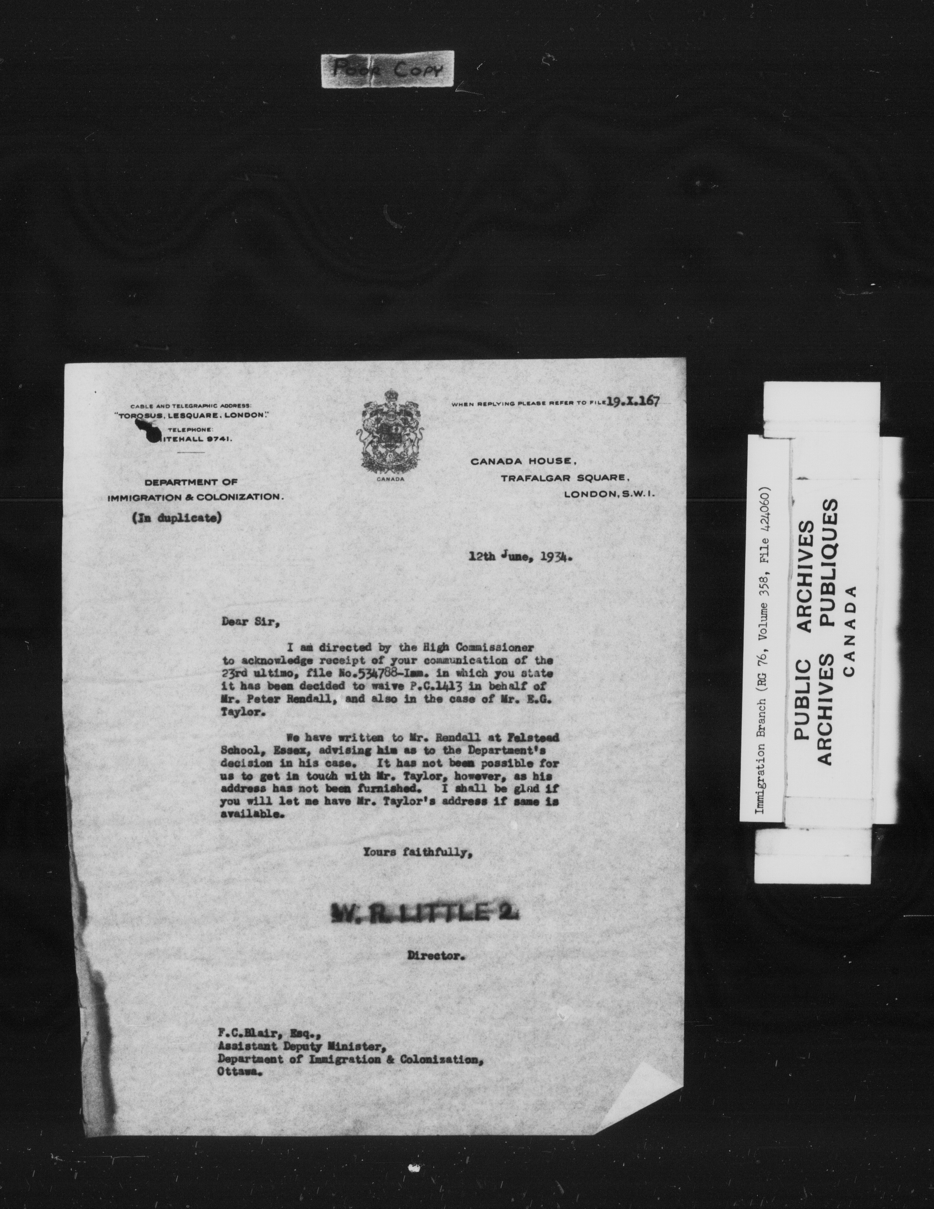 Subject, policy and case files in the First Central Registry series of the Immigration Program, 1892-1950 - 10261