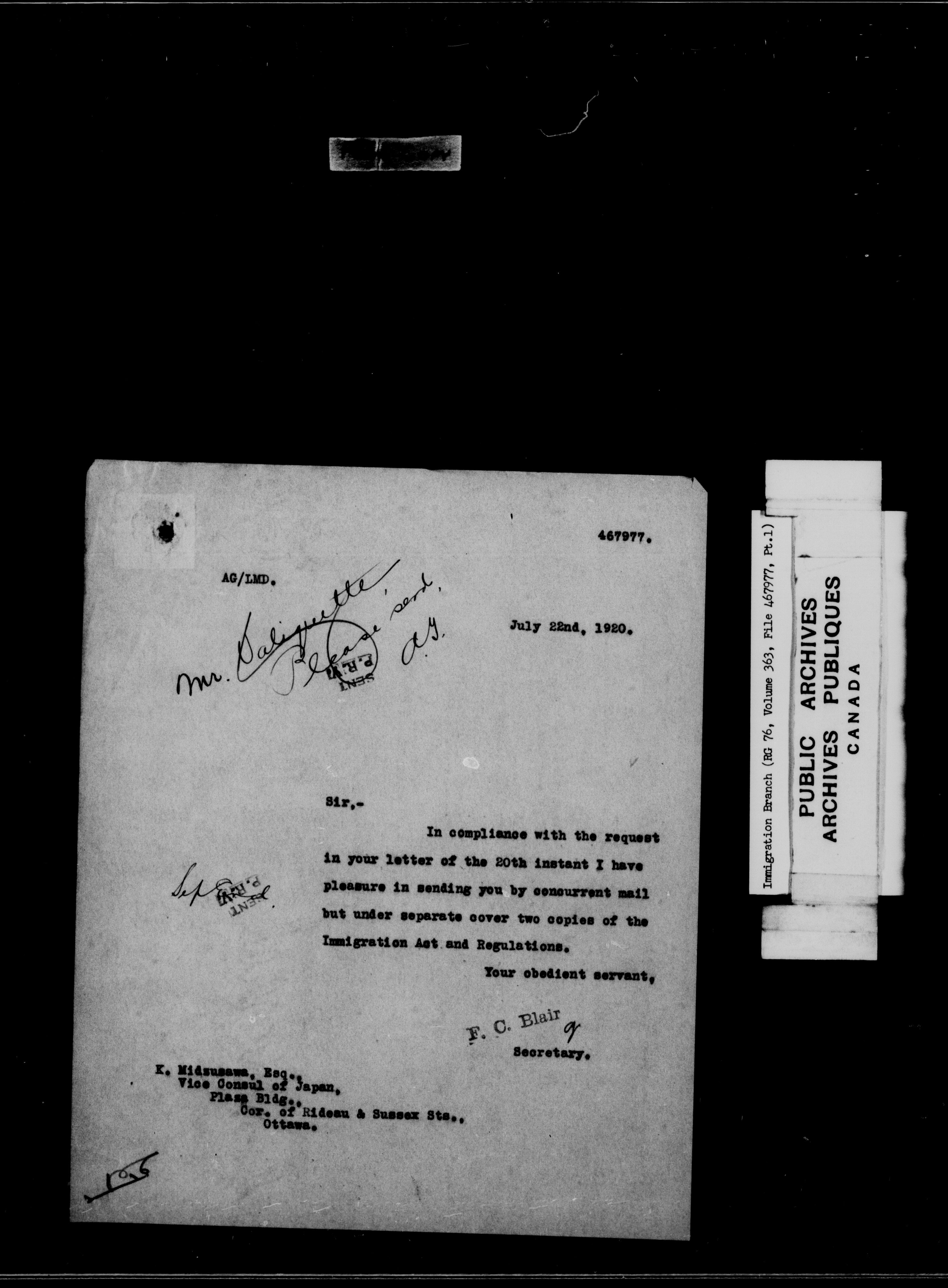 Subject, policy and case files in the First Central Registry series of the Immigration Program, 1892-1950 - 10264