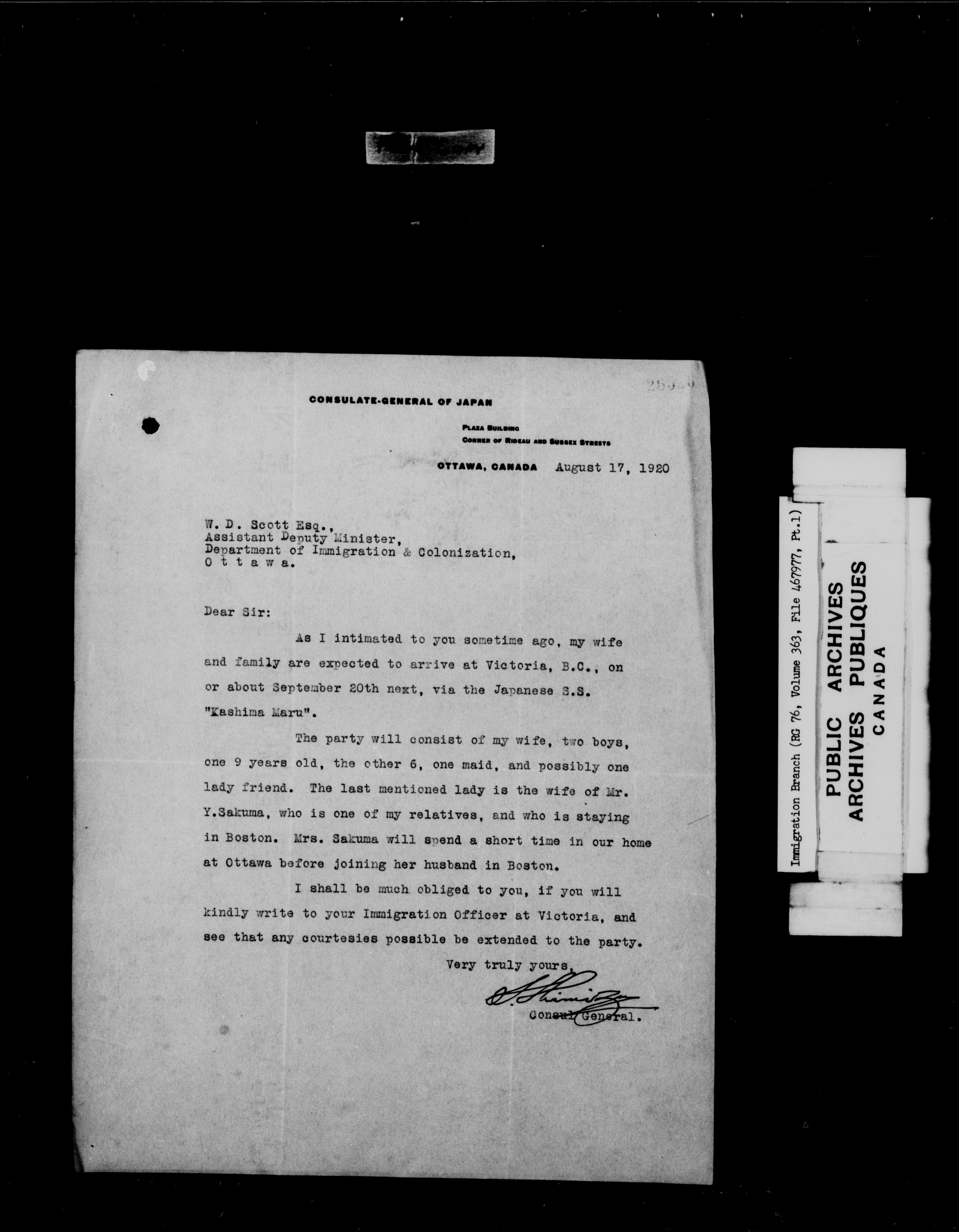 Subject, policy and case files in the First Central Registry series of the Immigration Program, 1892-1950 - 10264
