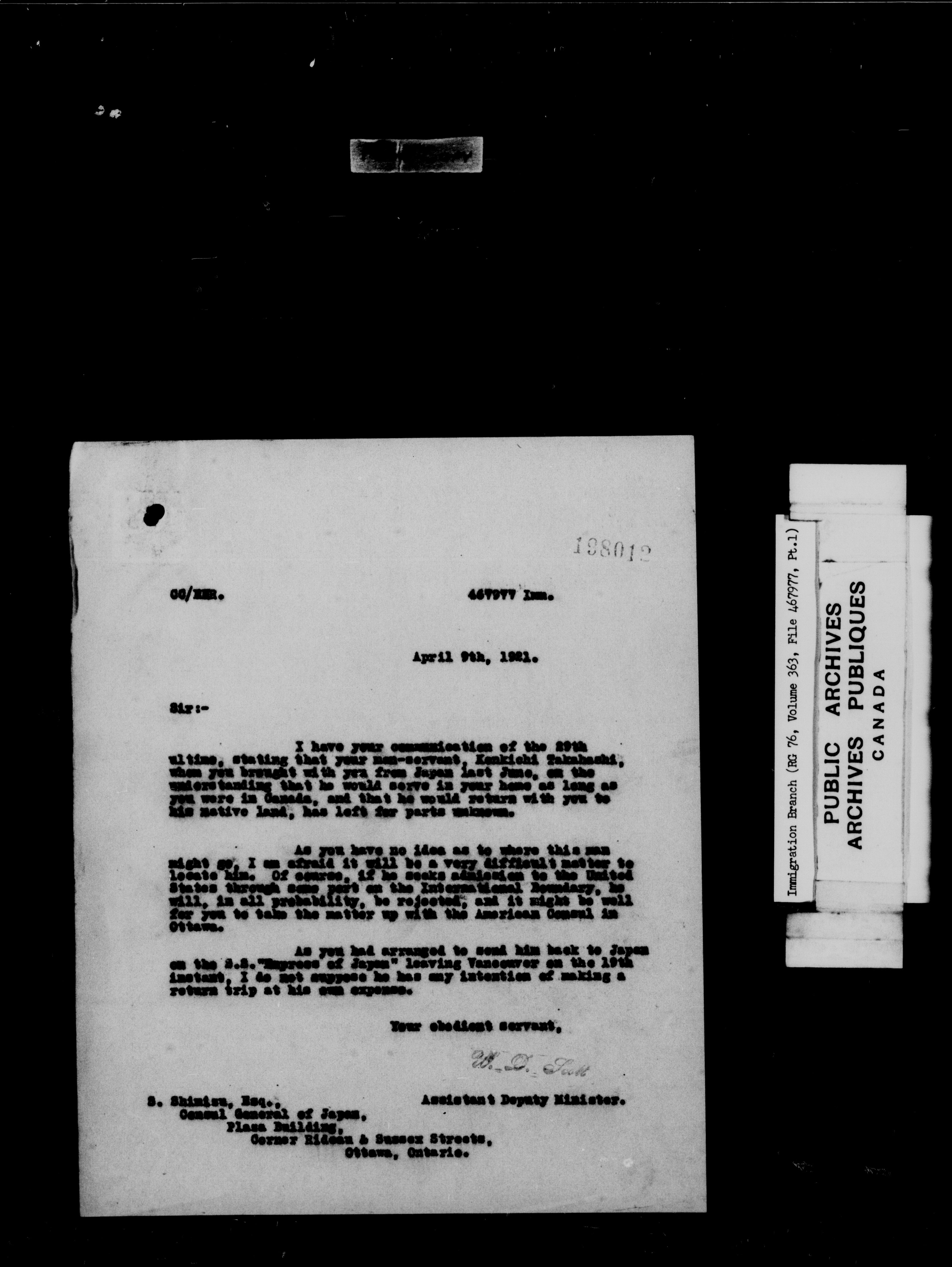Subject, policy and case files in the First Central Registry series of the Immigration Program, 1892-1950 - 10264