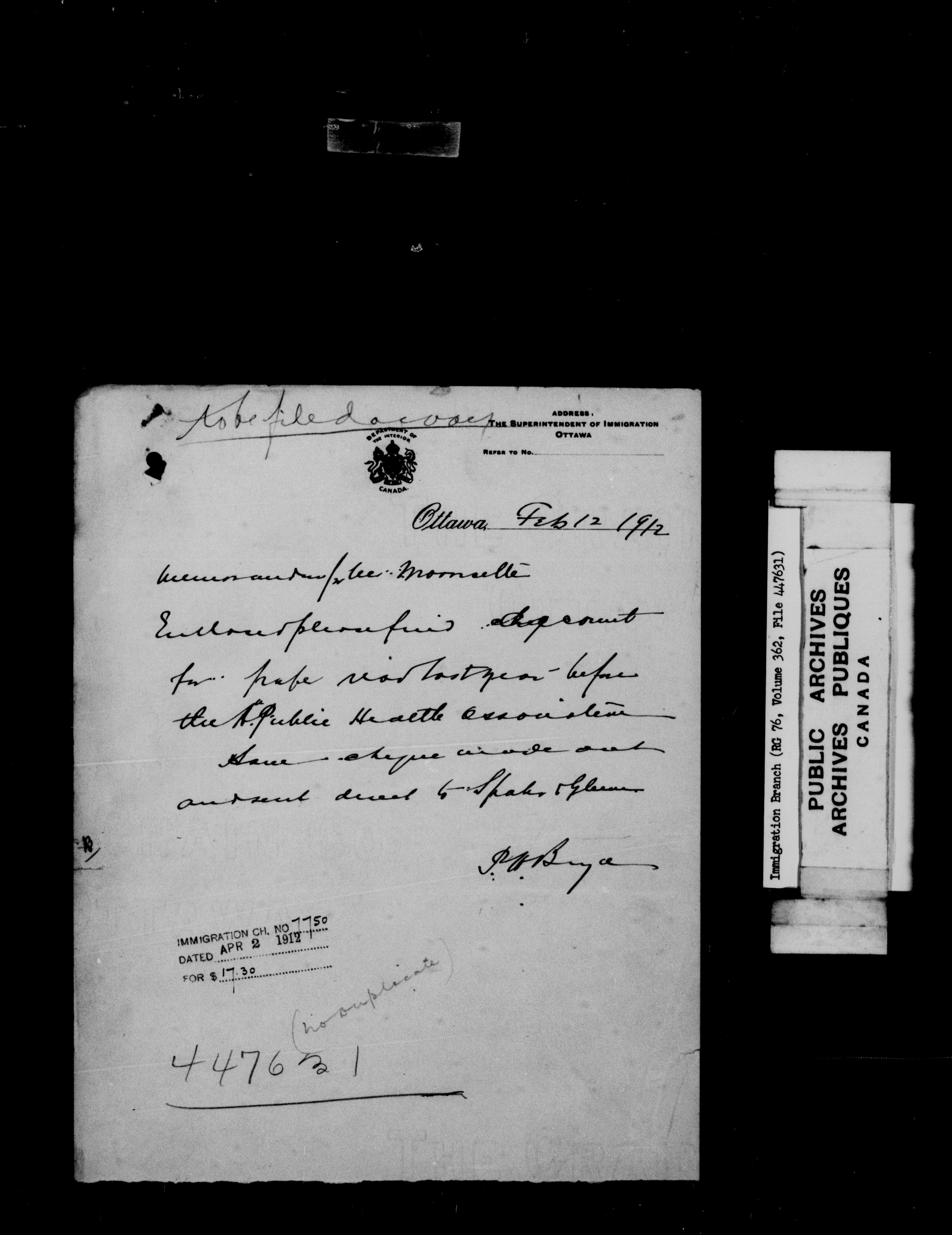 Subject, policy and case files in the First Central Registry series of the Immigration Program, 1892-1950 - 10264