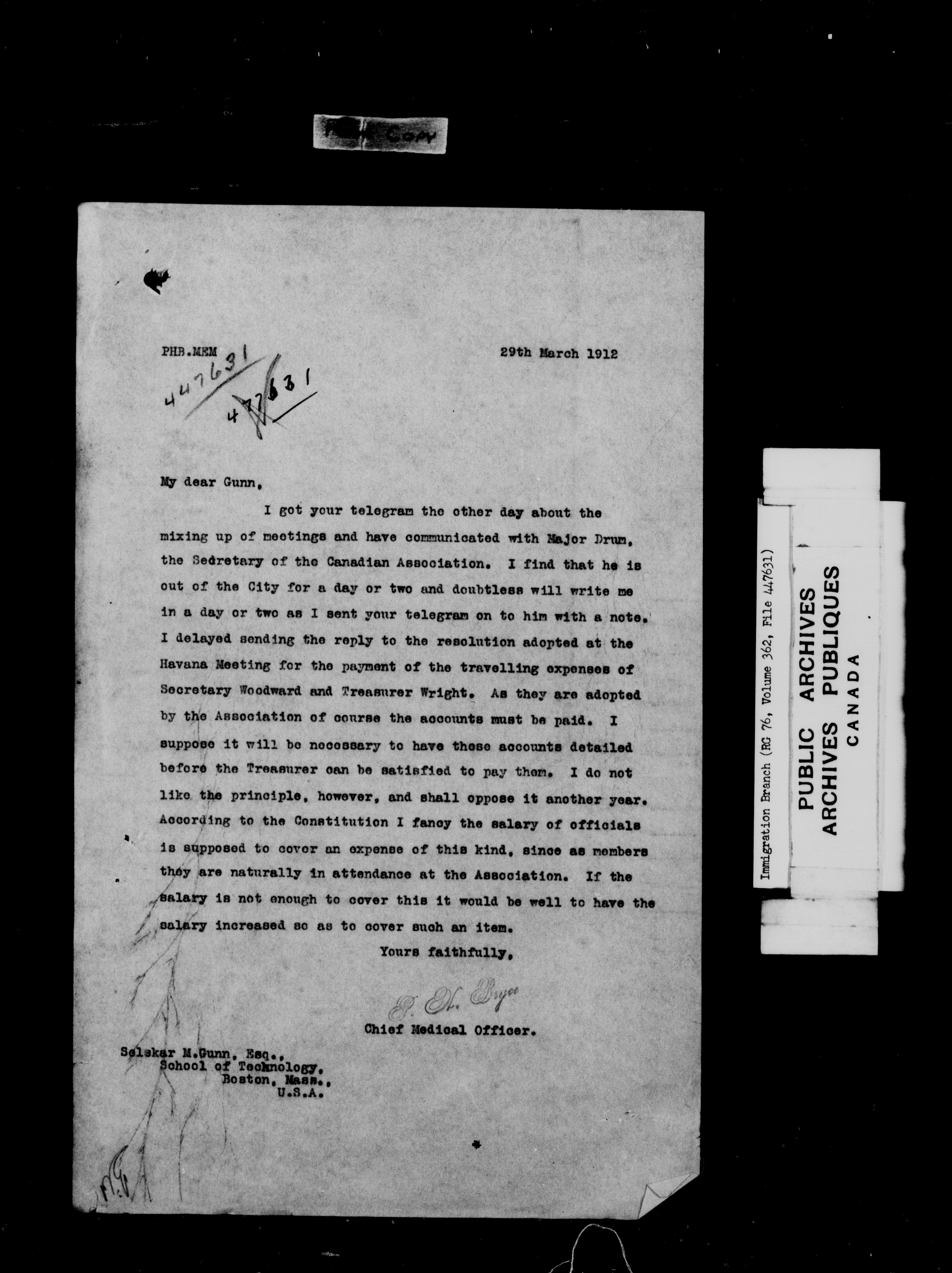 Subject, policy and case files in the First Central Registry series of the Immigration Program, 1892-1950 - 10264