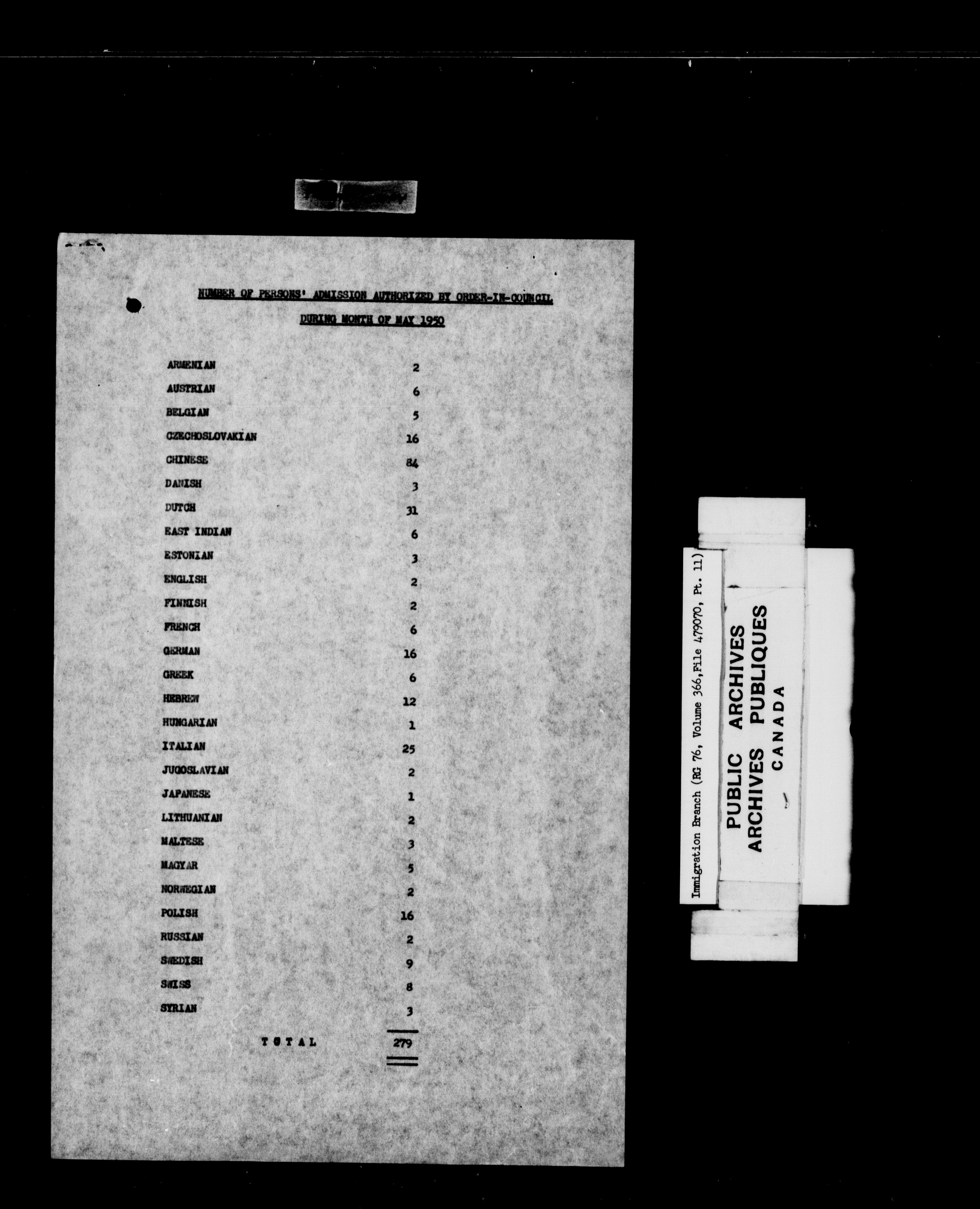 Subject, policy and case files in the First Central Registry series of the Immigration Program, 1892-1950 - 10266