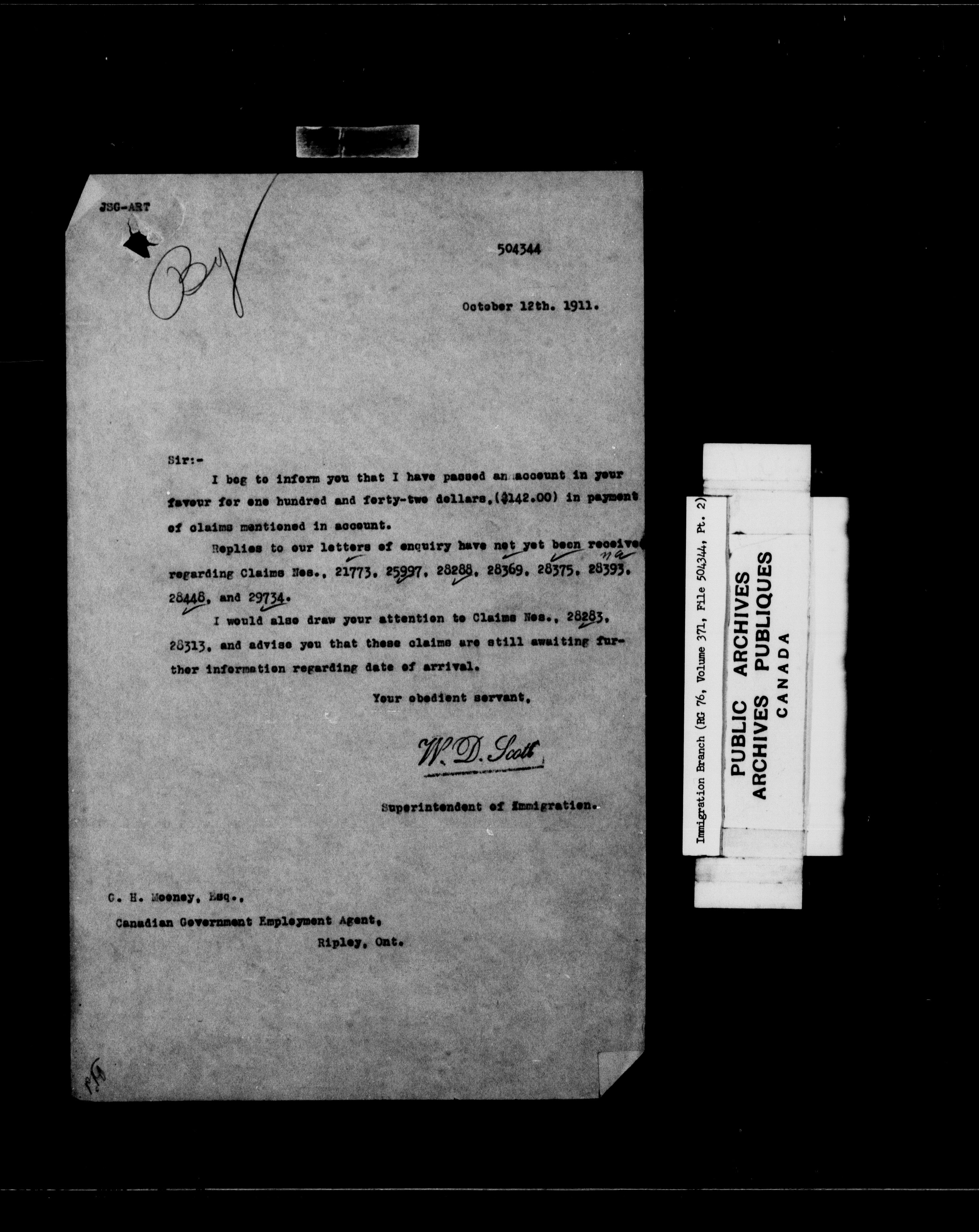 Subject, policy and case files in the First Central Registry series of the Immigration Program, 1892-1950 - 10271