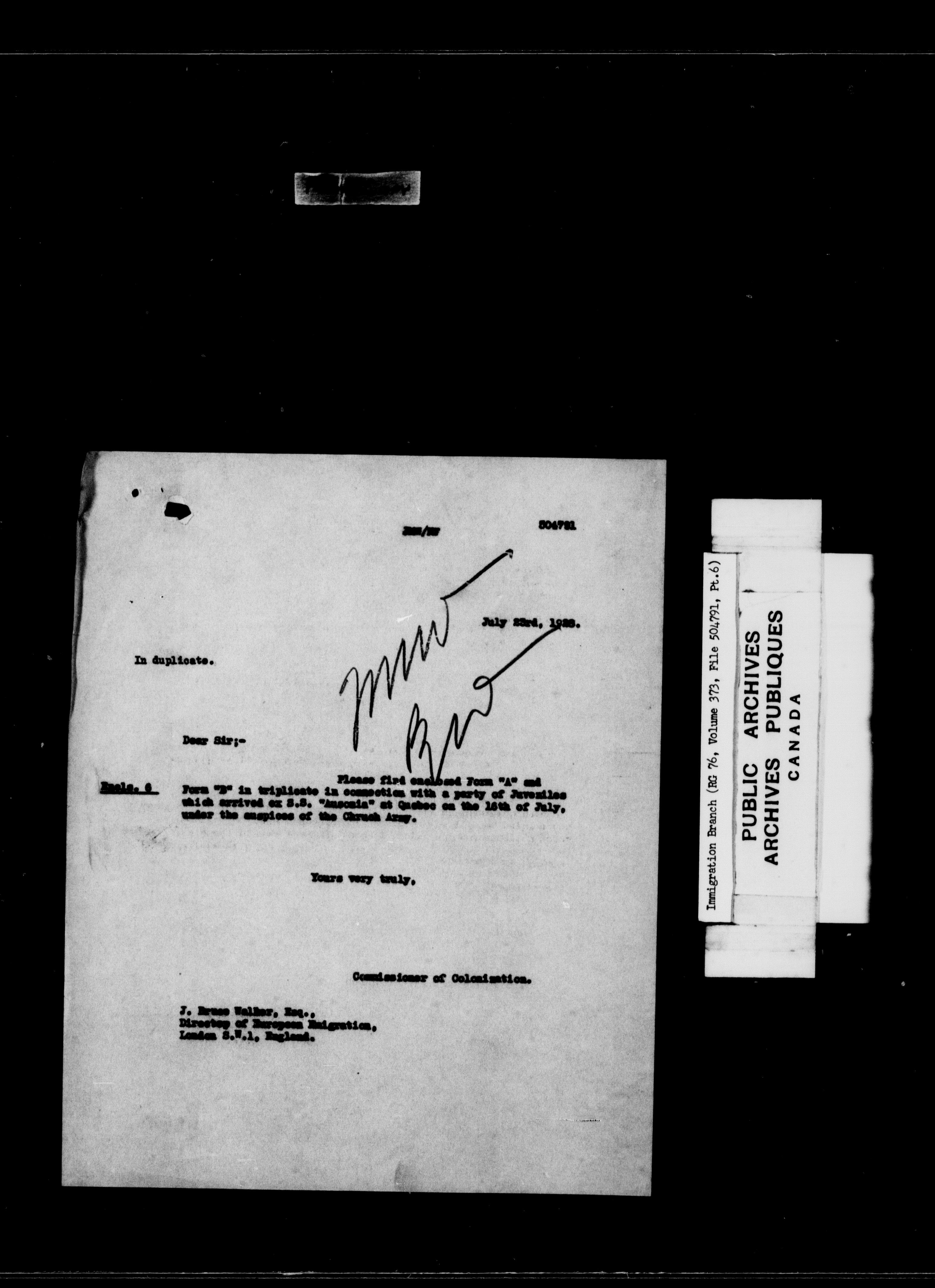 Subject, policy and case files in the First Central Registry series of the Immigration Program, 1892-1950 - 10272