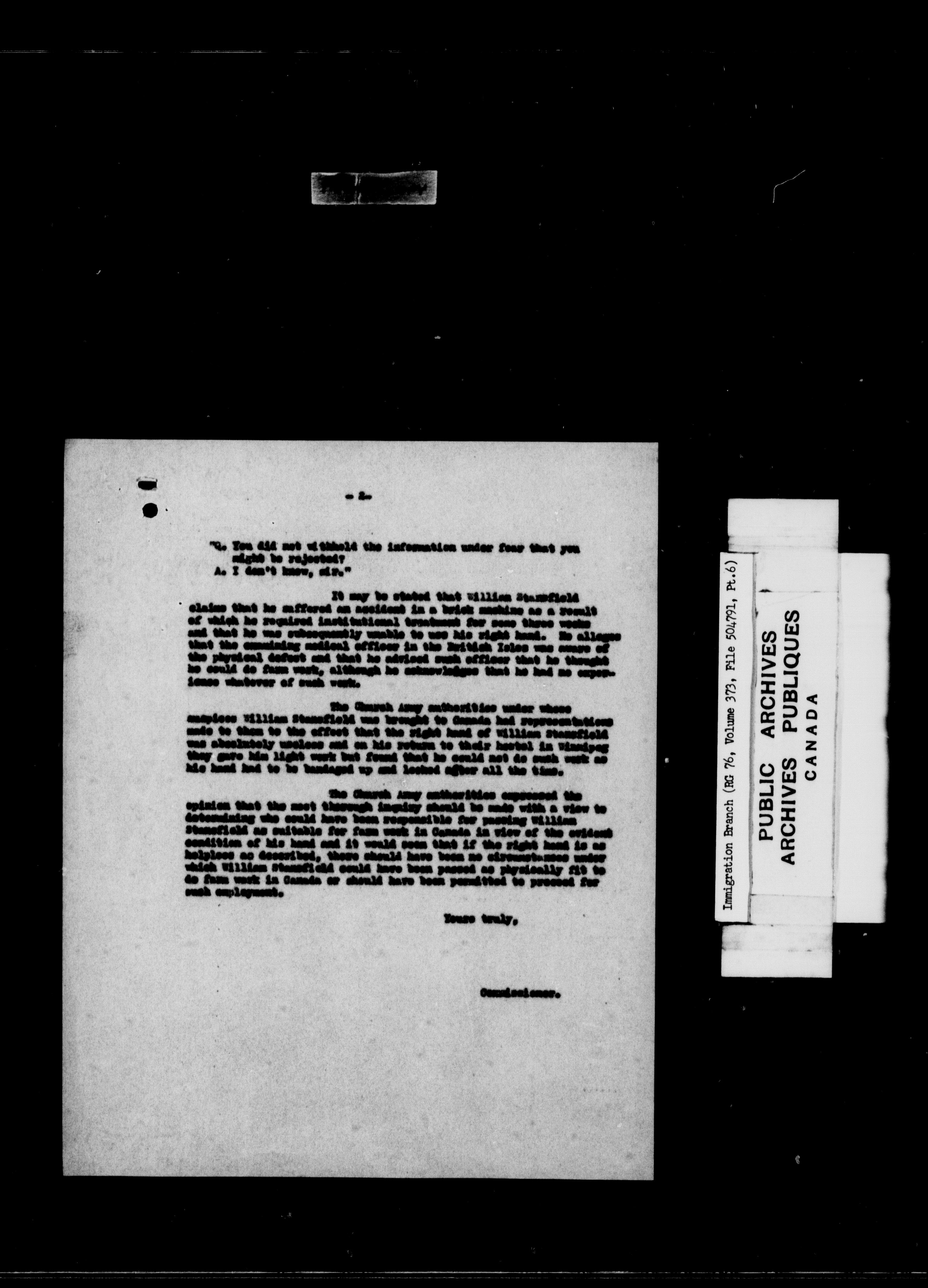 Subject, policy and case files in the First Central Registry series of the Immigration Program, 1892-1950 - 10272
