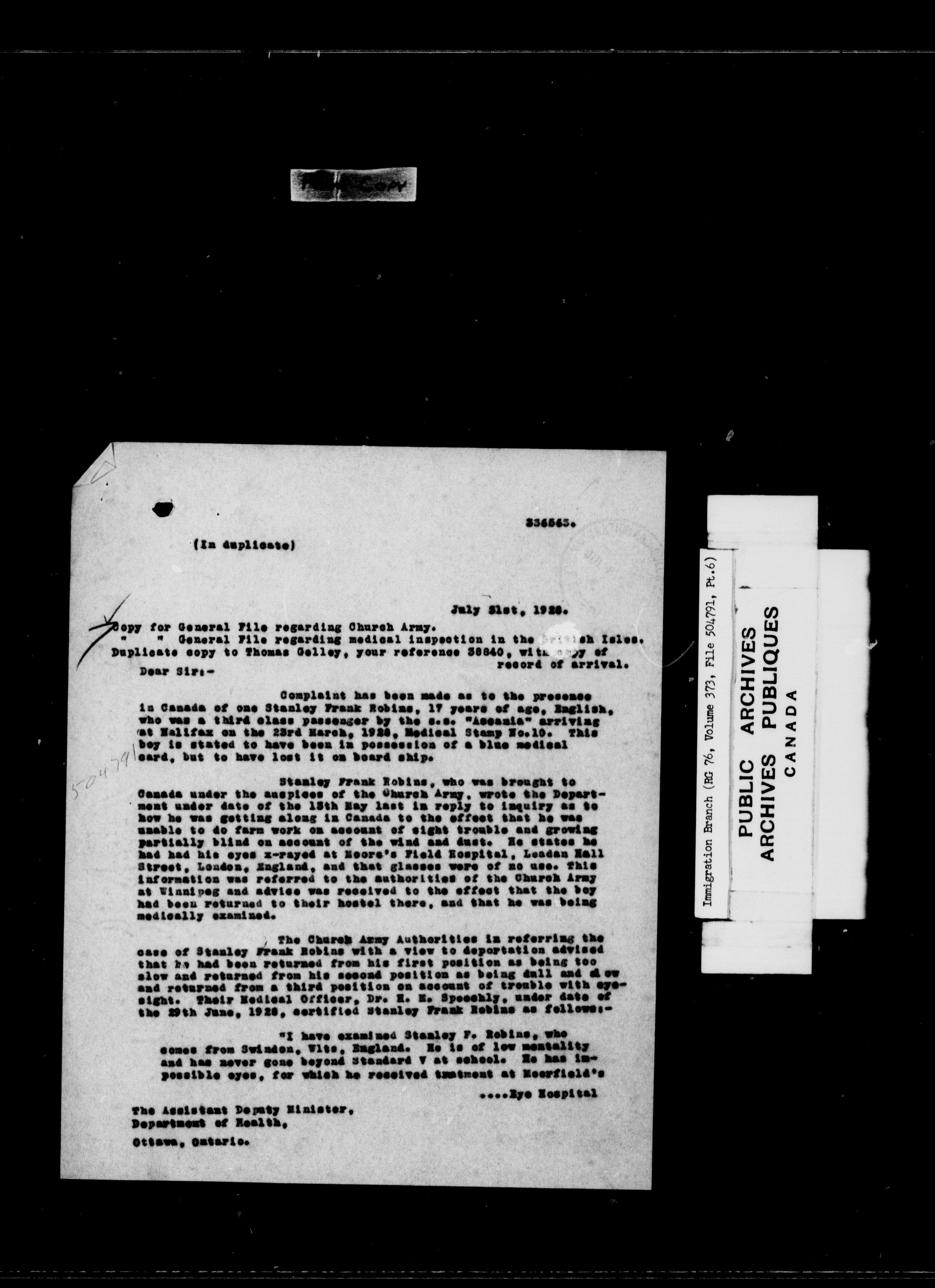 Subject, policy and case files in the First Central Registry series of the Immigration Program, 1892-1950 - 10272