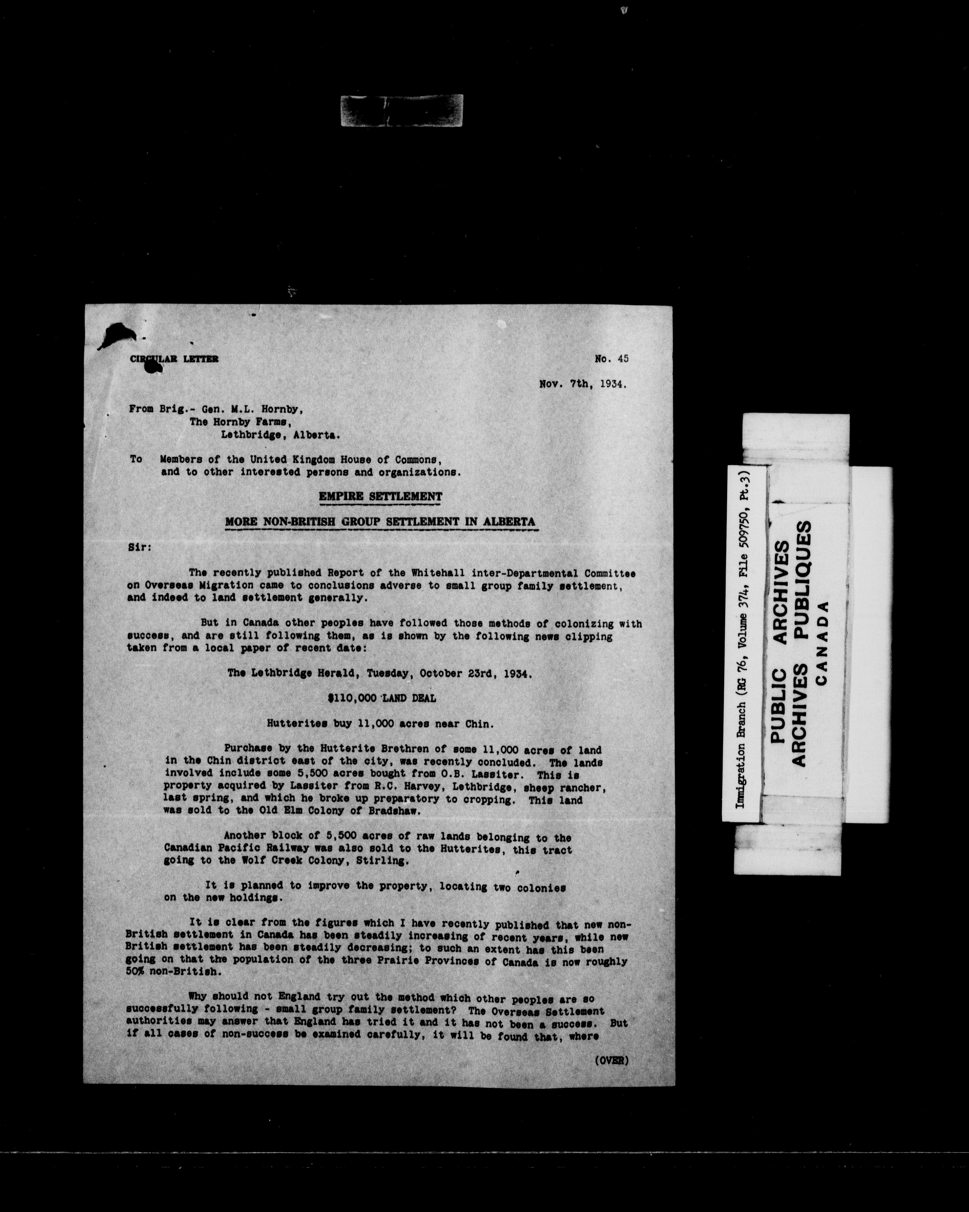 Subject, policy and case files in the First Central Registry series of the Immigration Program, 1892-1950 - 10273