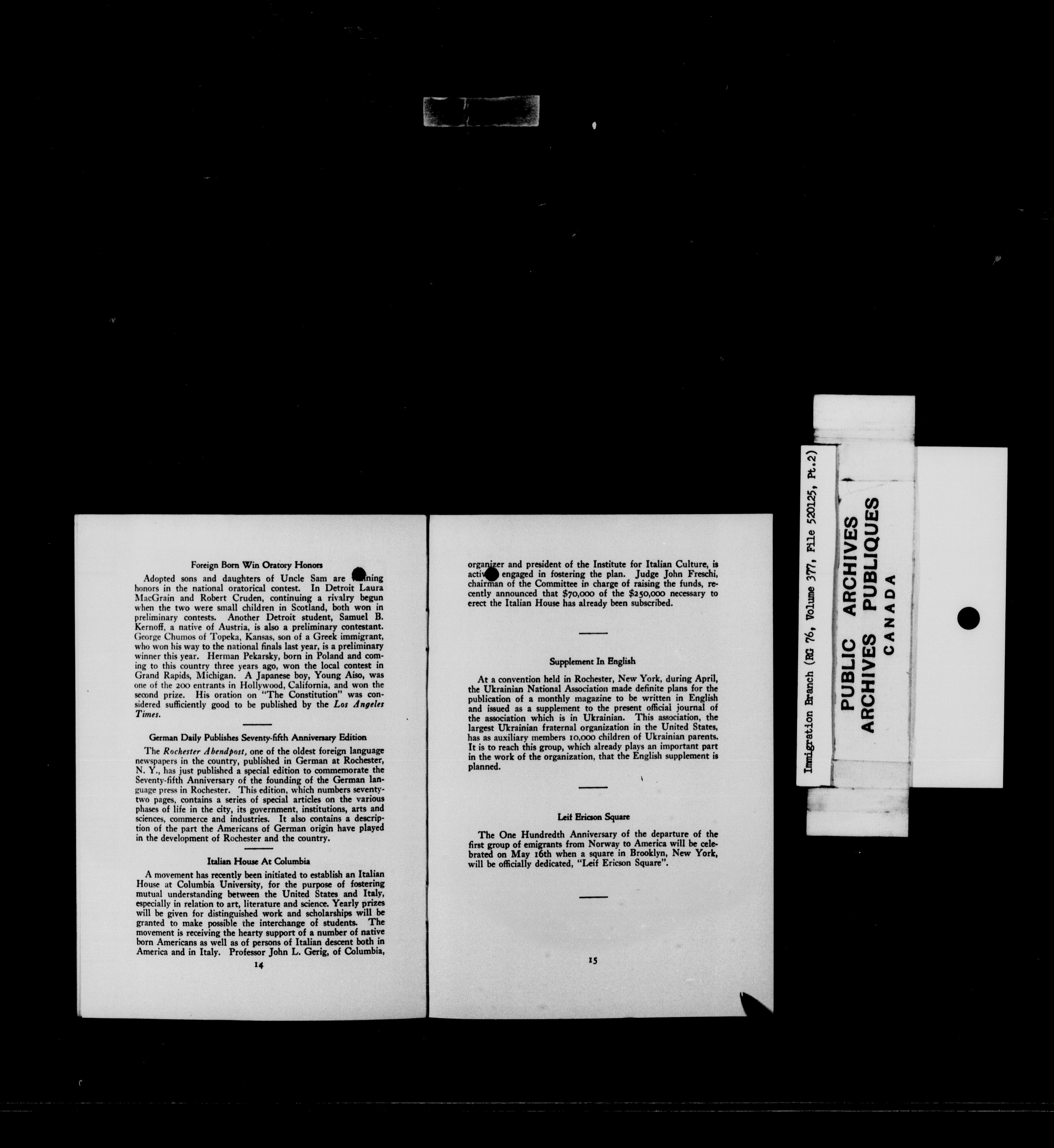 Subject, policy and case files in the First Central Registry series of the Immigration Program, 1892-1950 - 10274