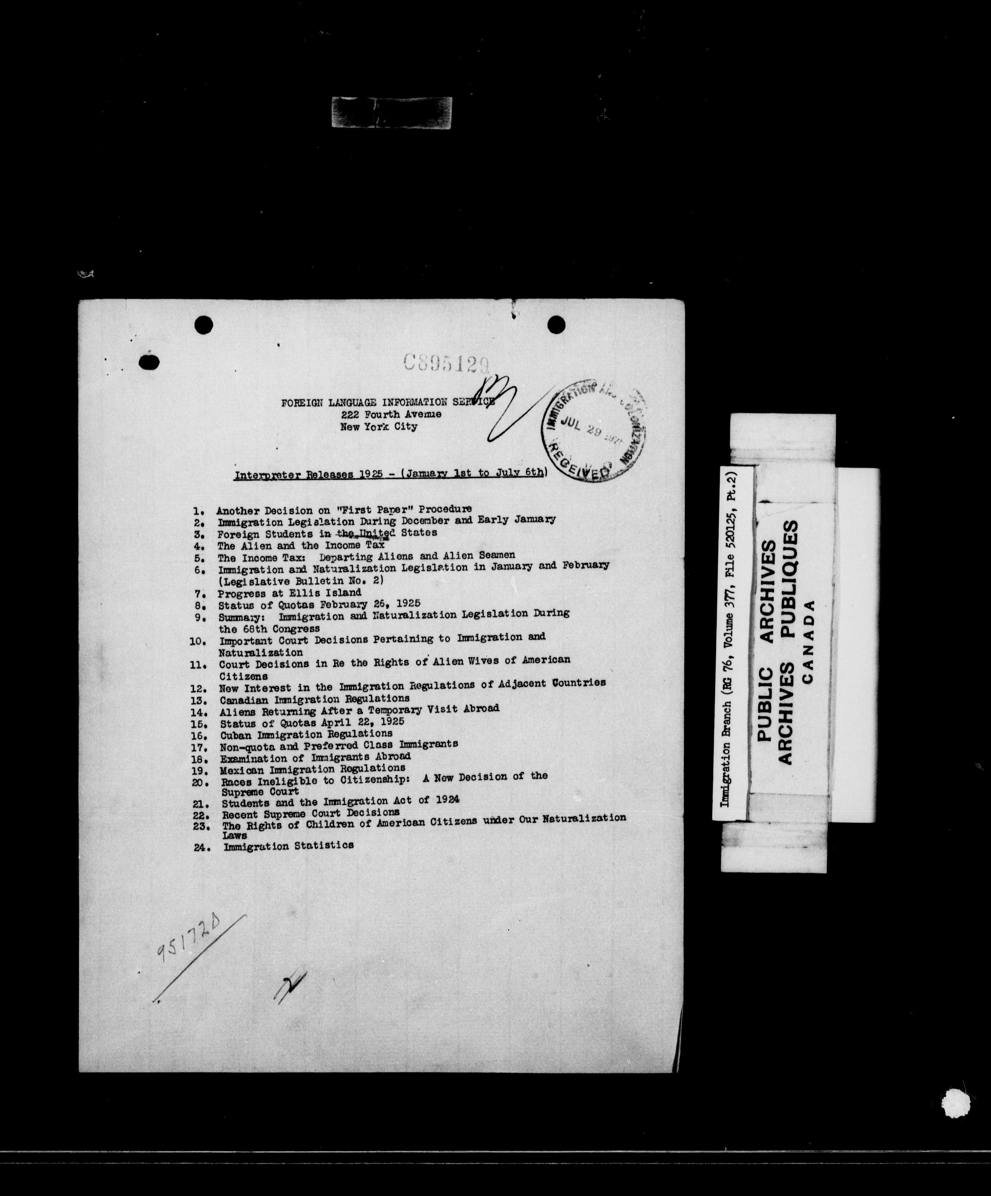 Subject, policy and case files in the First Central Registry series of the Immigration Program, 1892-1950 - 10275