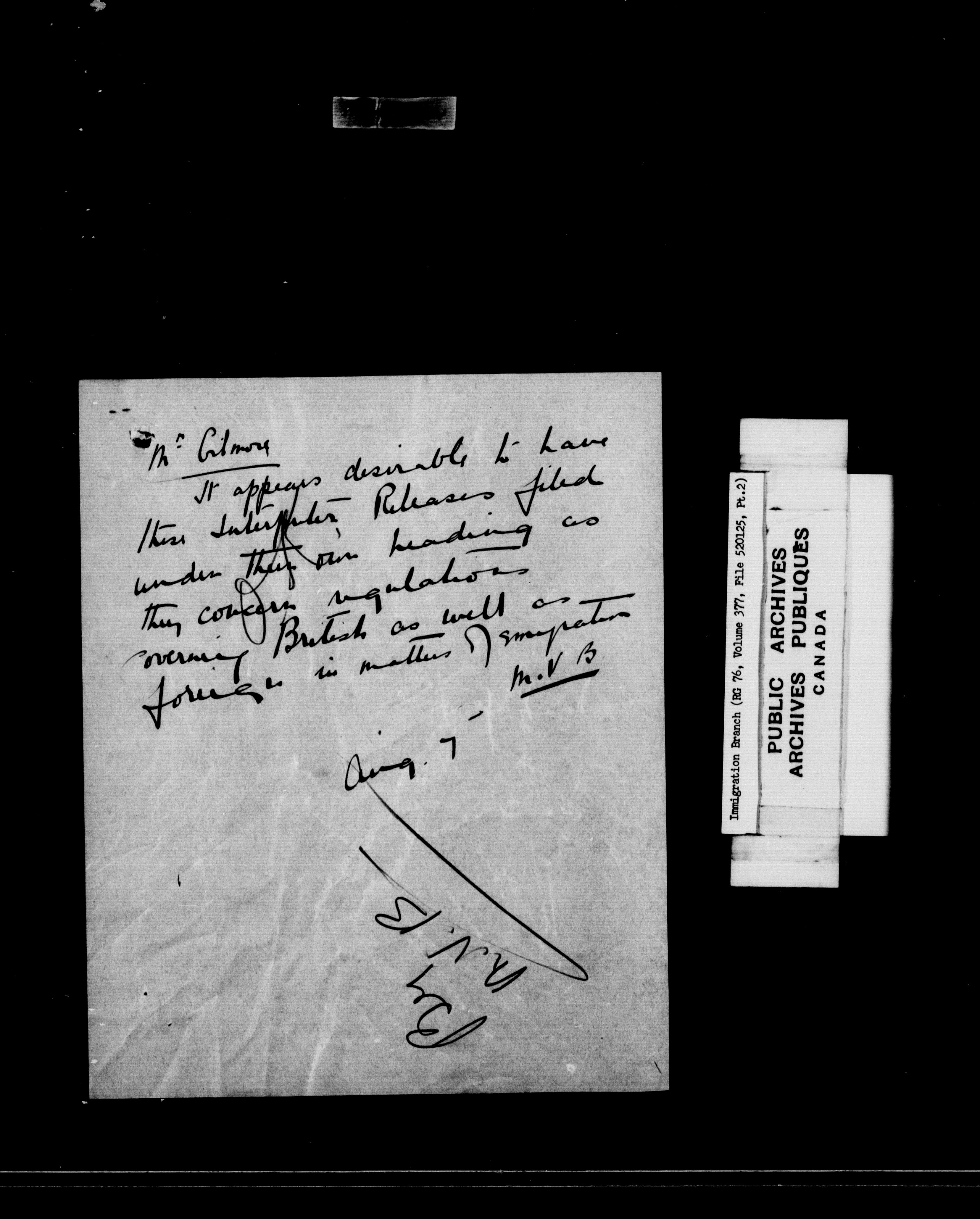Subject, policy and case files in the First Central Registry series of the Immigration Program, 1892-1950 - 10275