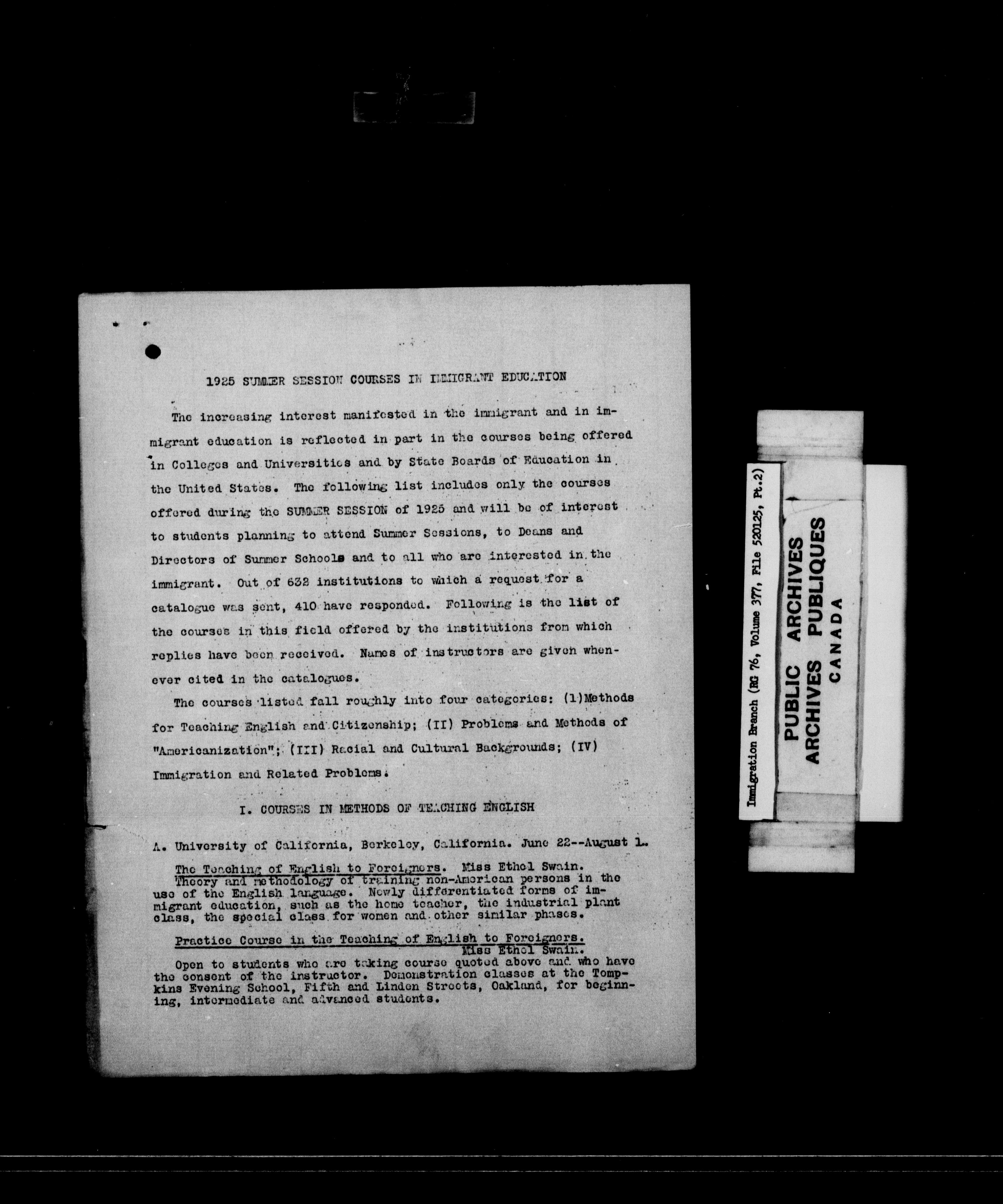 Immigration Program : Headquarters central registry files : C-10275