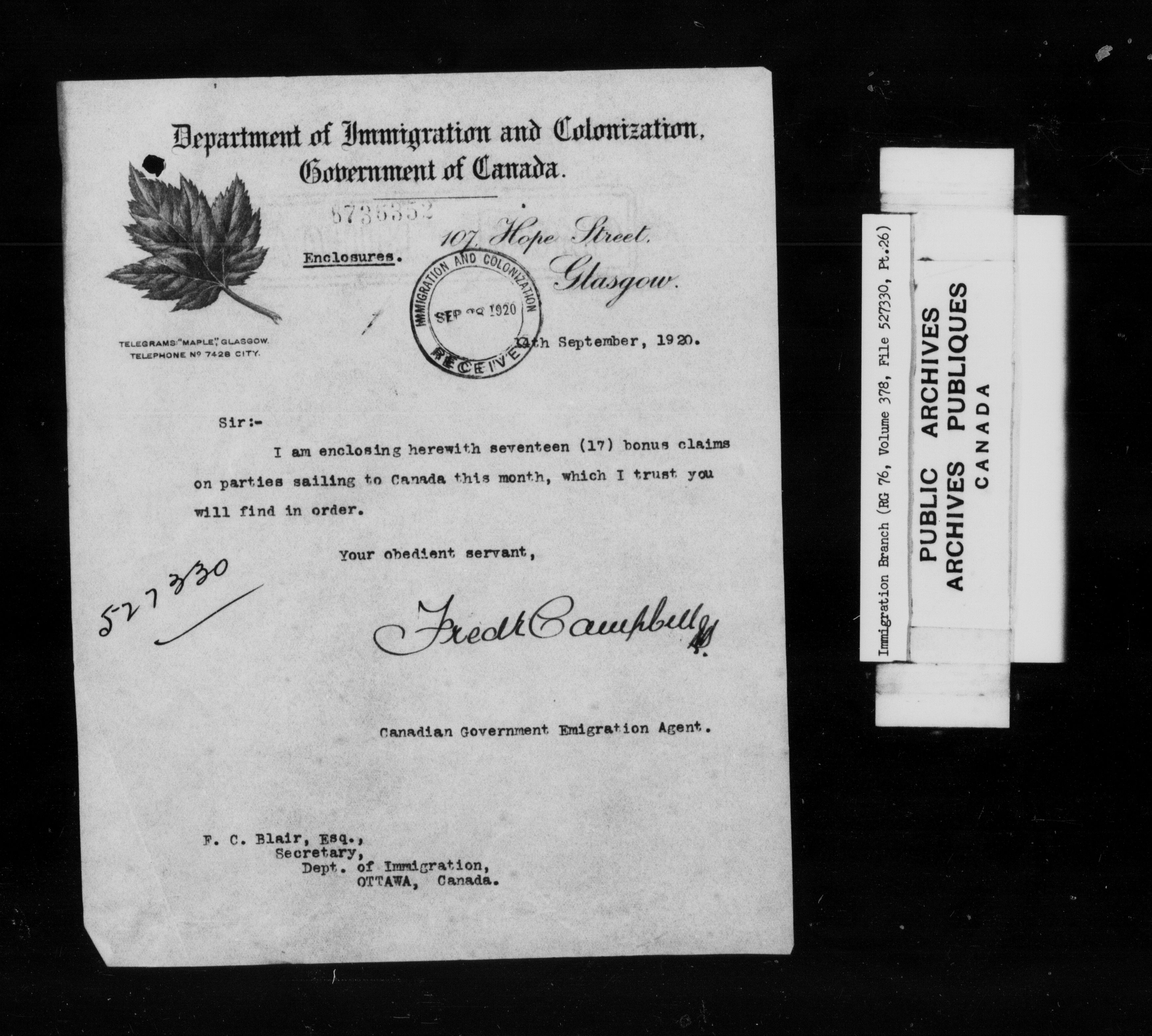 Subject, policy and case files in the First Central Registry series of the Immigration Program, 1892-1950 - 10276