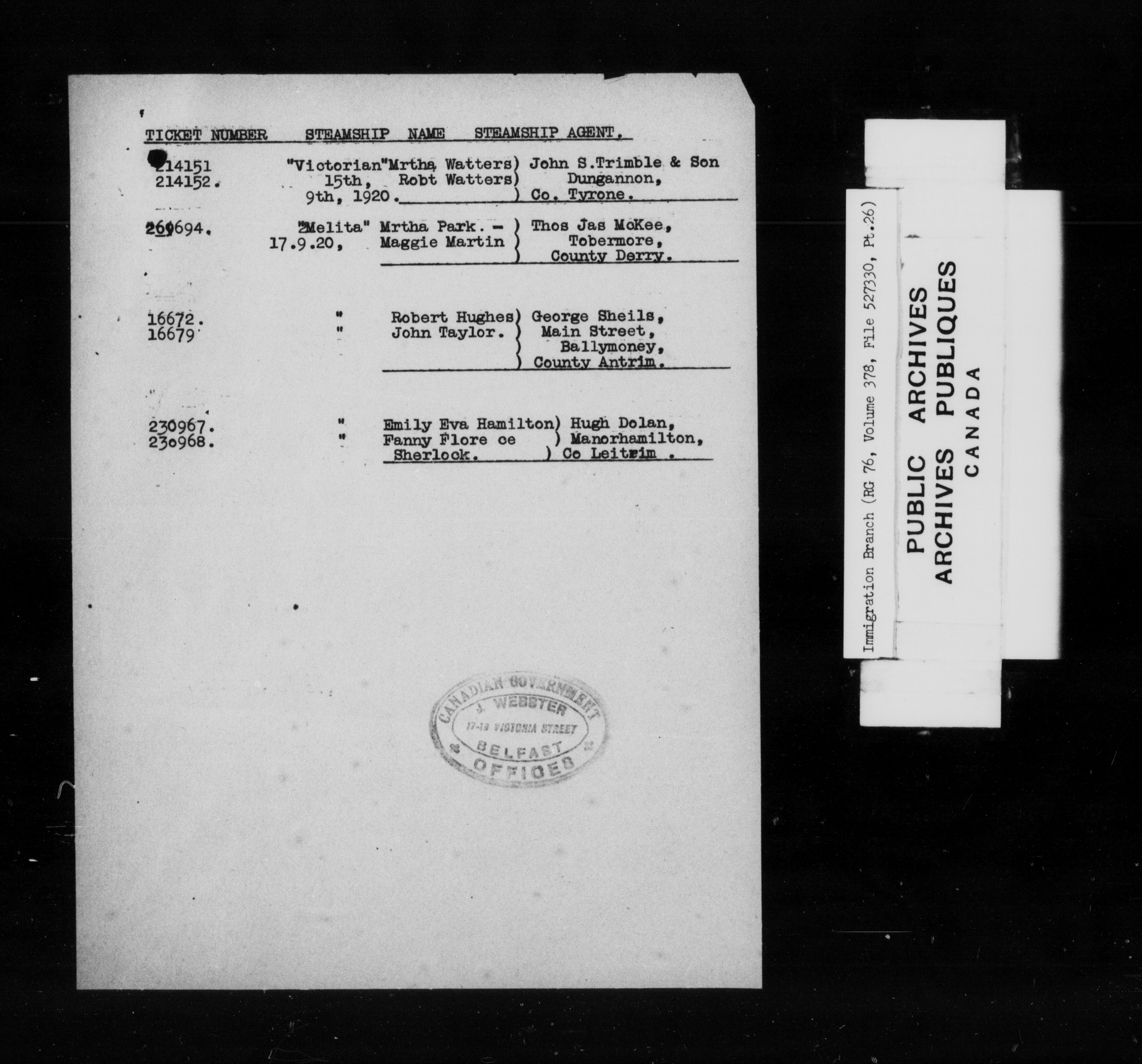Subject, policy and case files in the First Central Registry series of the Immigration Program, 1892-1950 - 10276
