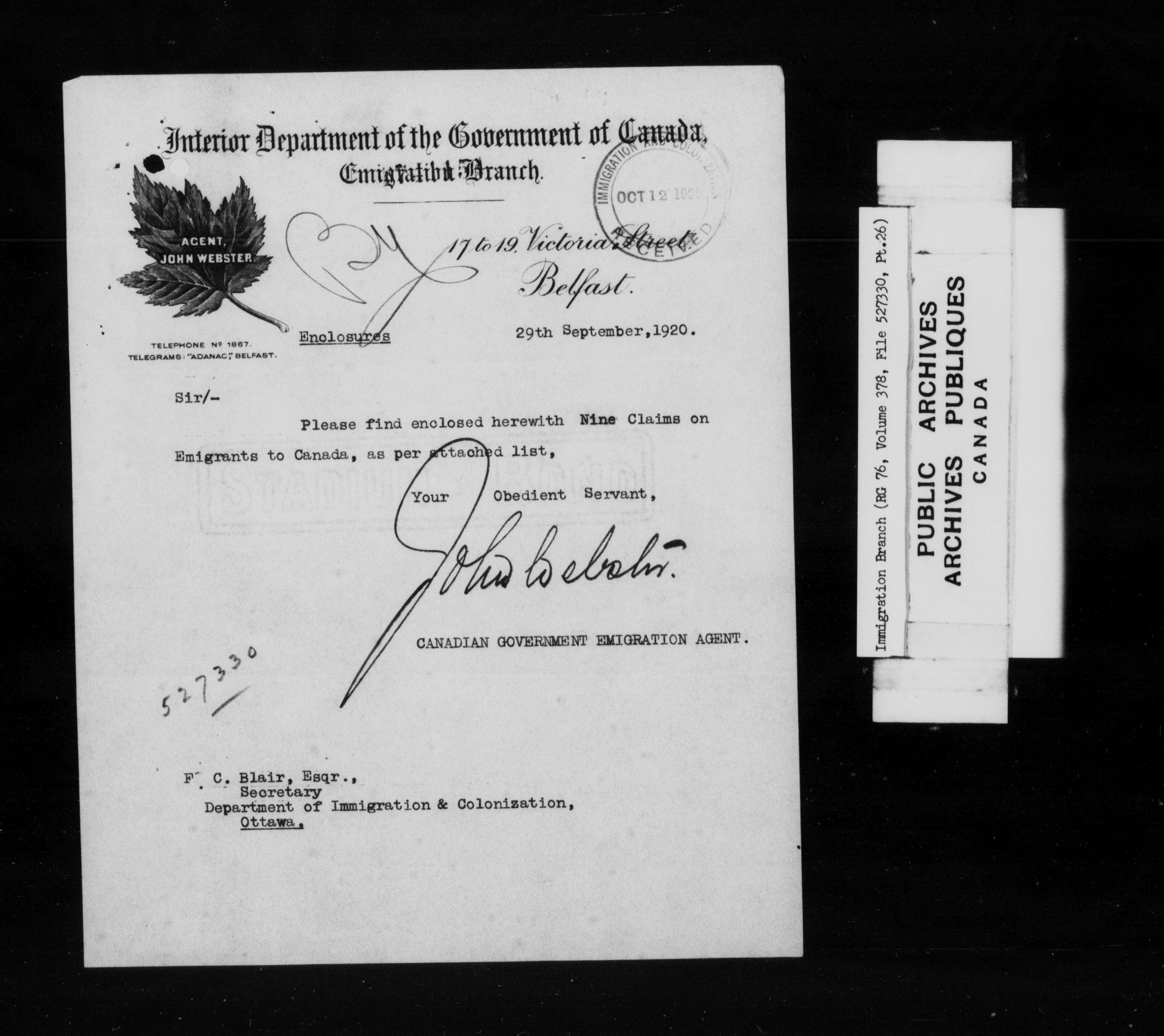Subject, policy and case files in the First Central Registry series of the Immigration Program, 1892-1950 - 10276