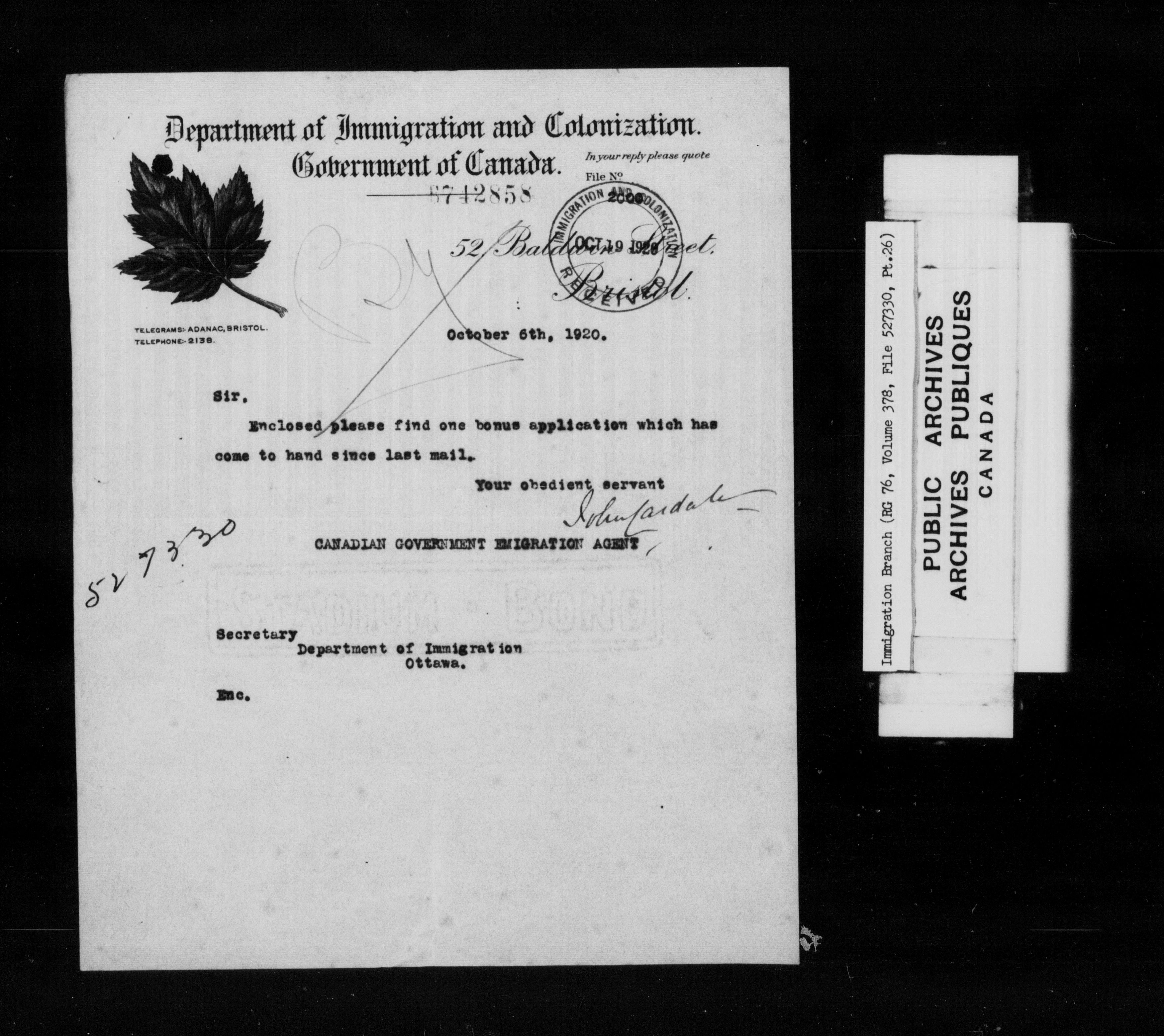 Subject, policy and case files in the First Central Registry series of the Immigration Program, 1892-1950 - 10276