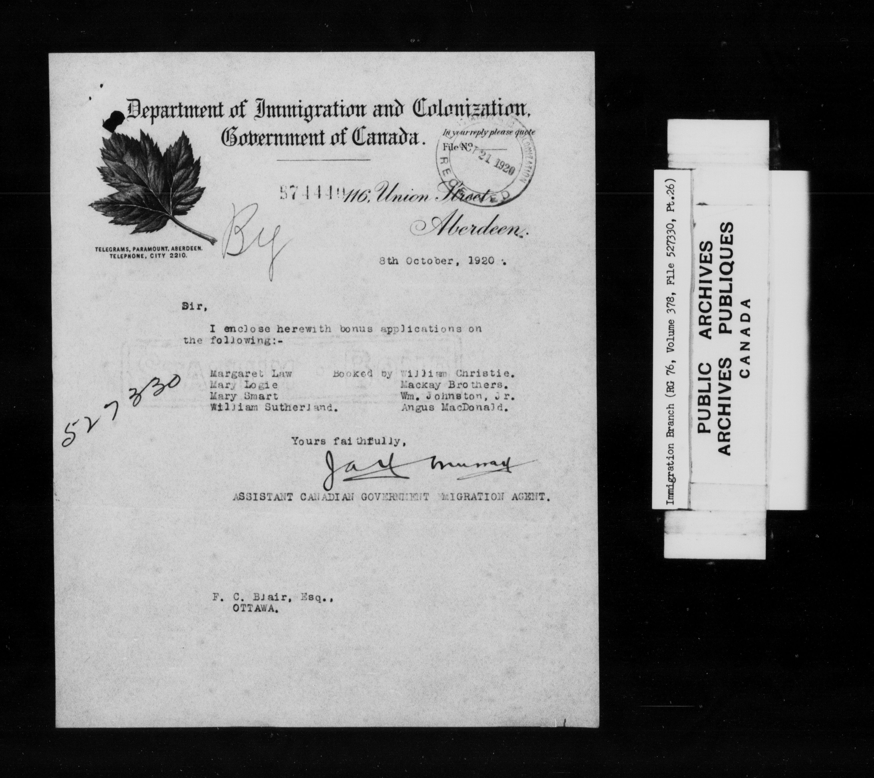 Subject, policy and case files in the First Central Registry series of the Immigration Program, 1892-1950 - 10276