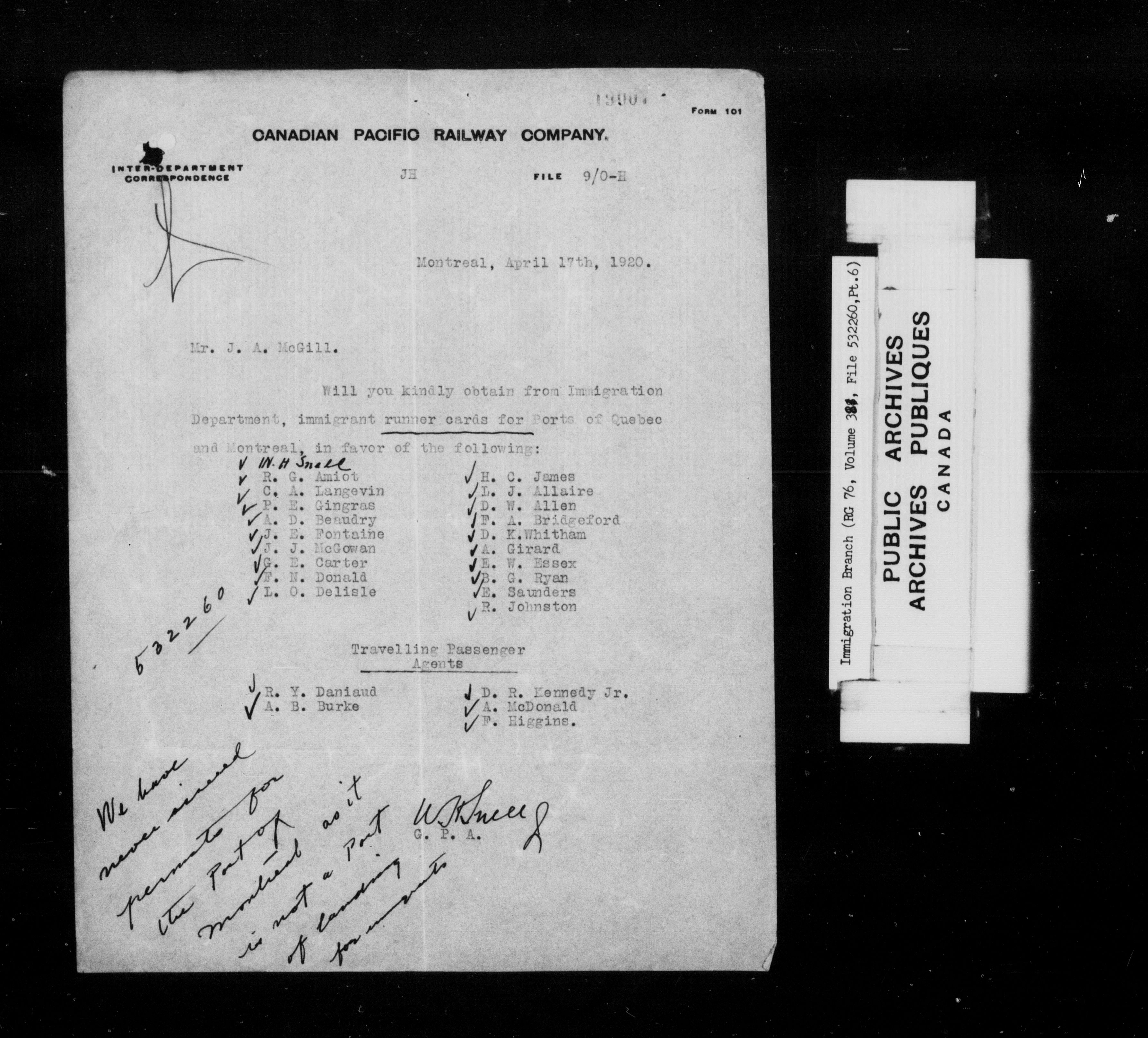 Subject, policy and case files in the First Central Registry series of the Immigration Program, 1892-1950 - 10278