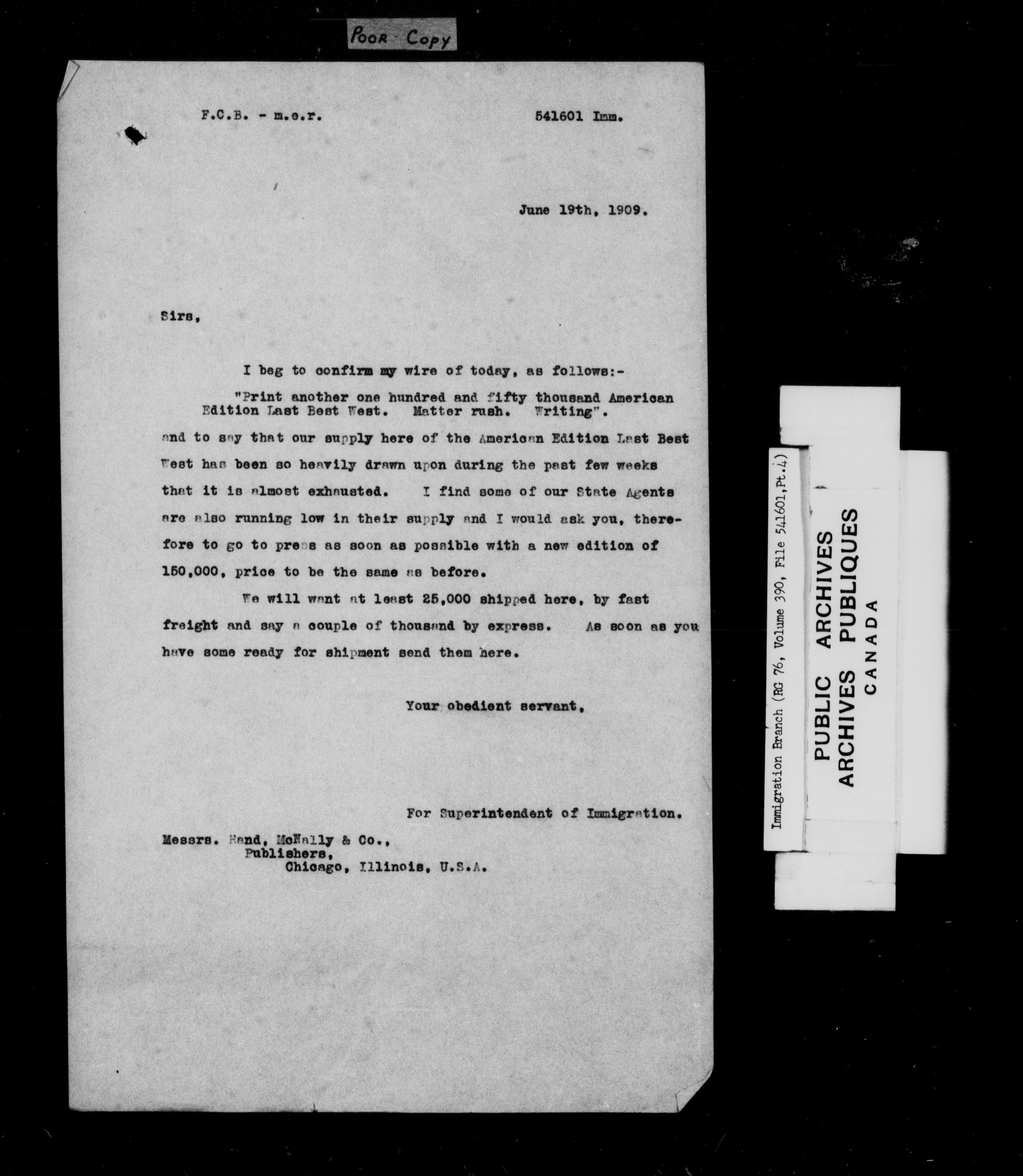 Subject, policy and case files in the First Central Registry series of the Immigration Program, 1892-1950 - 10283