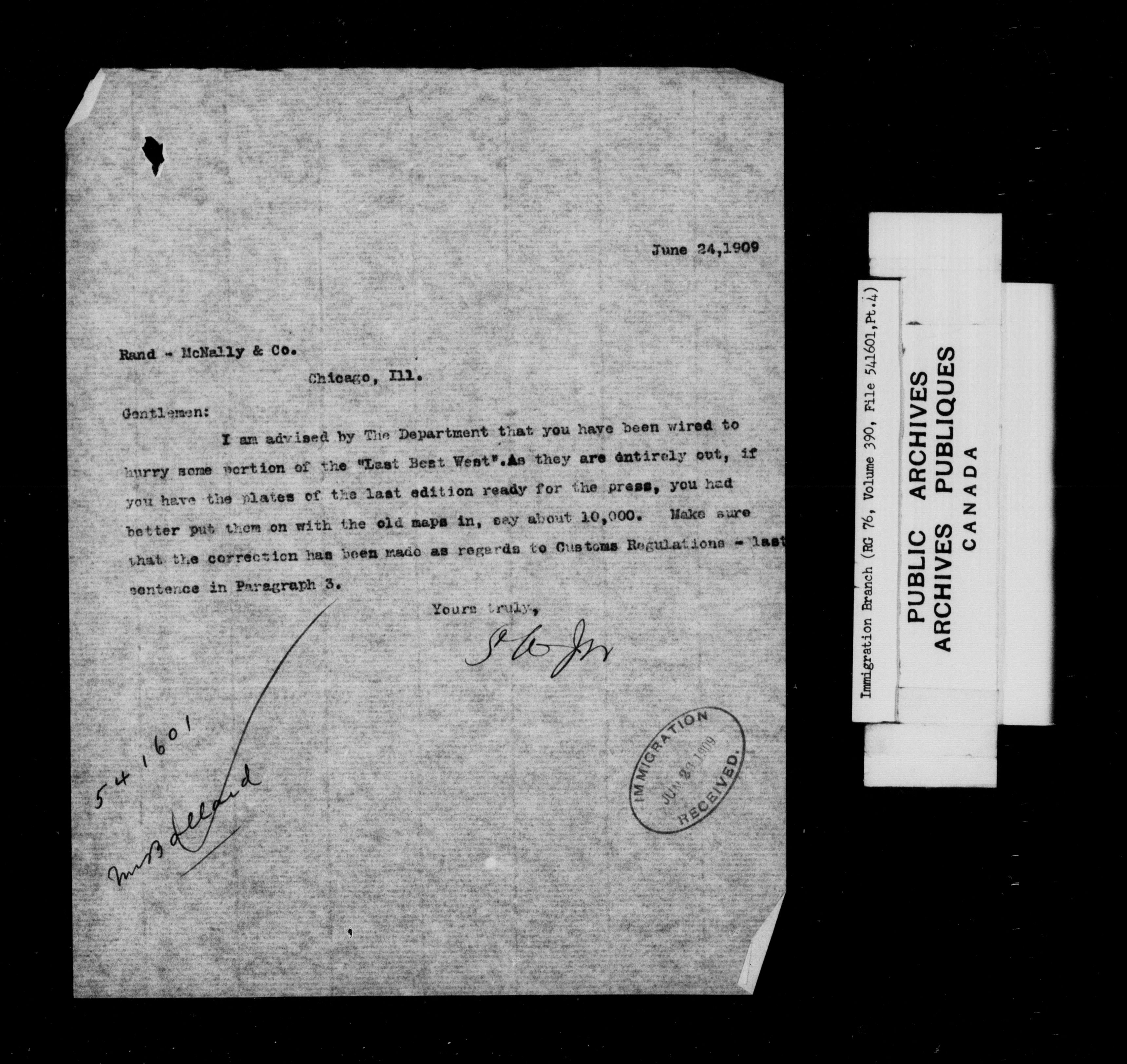 Subject, policy and case files in the First Central Registry series of the Immigration Program, 1892-1950 - 10283
