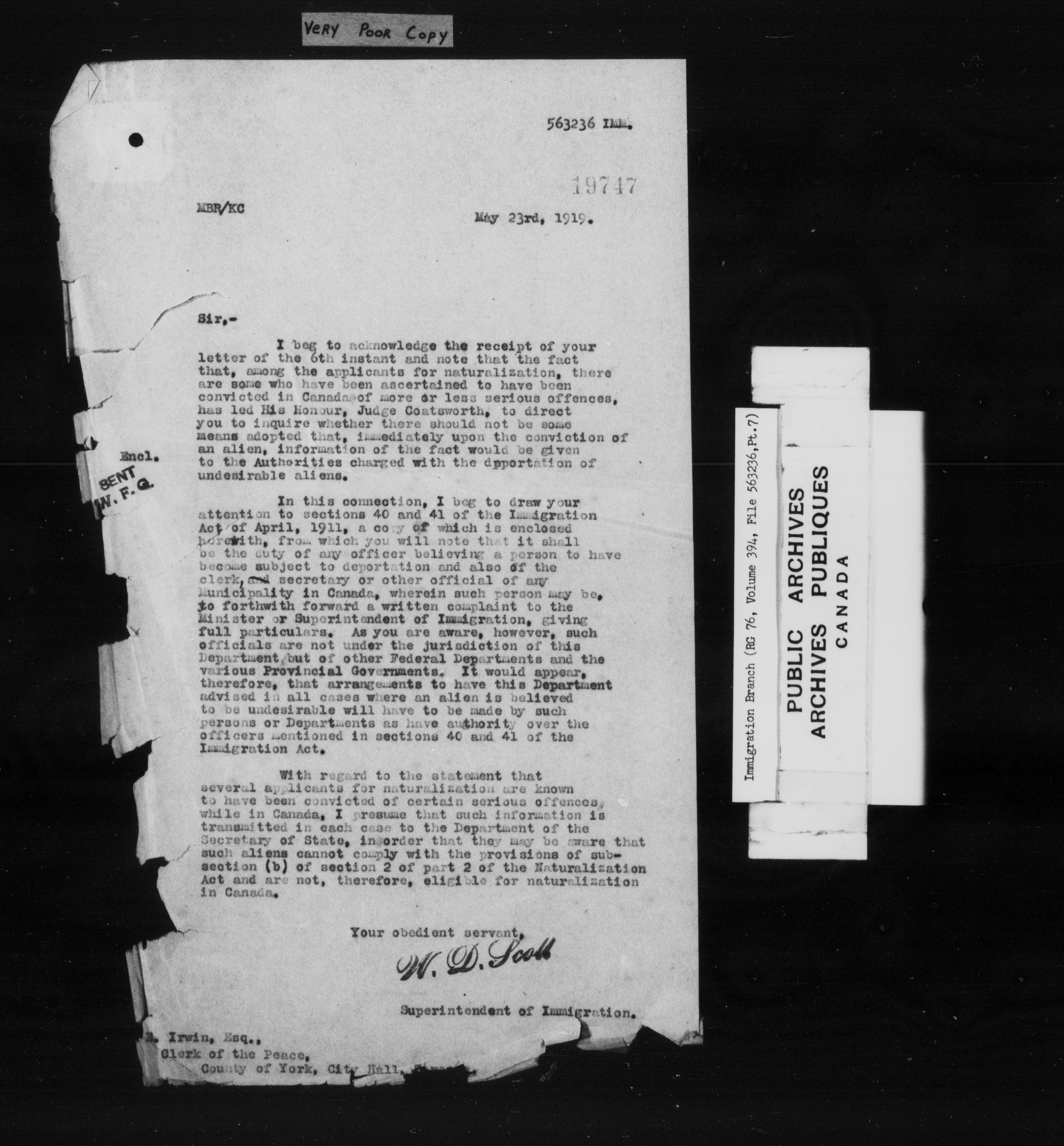 Subject, policy and case files in the First Central Registry series of the Immigration Program, 1892-1950 - 10287