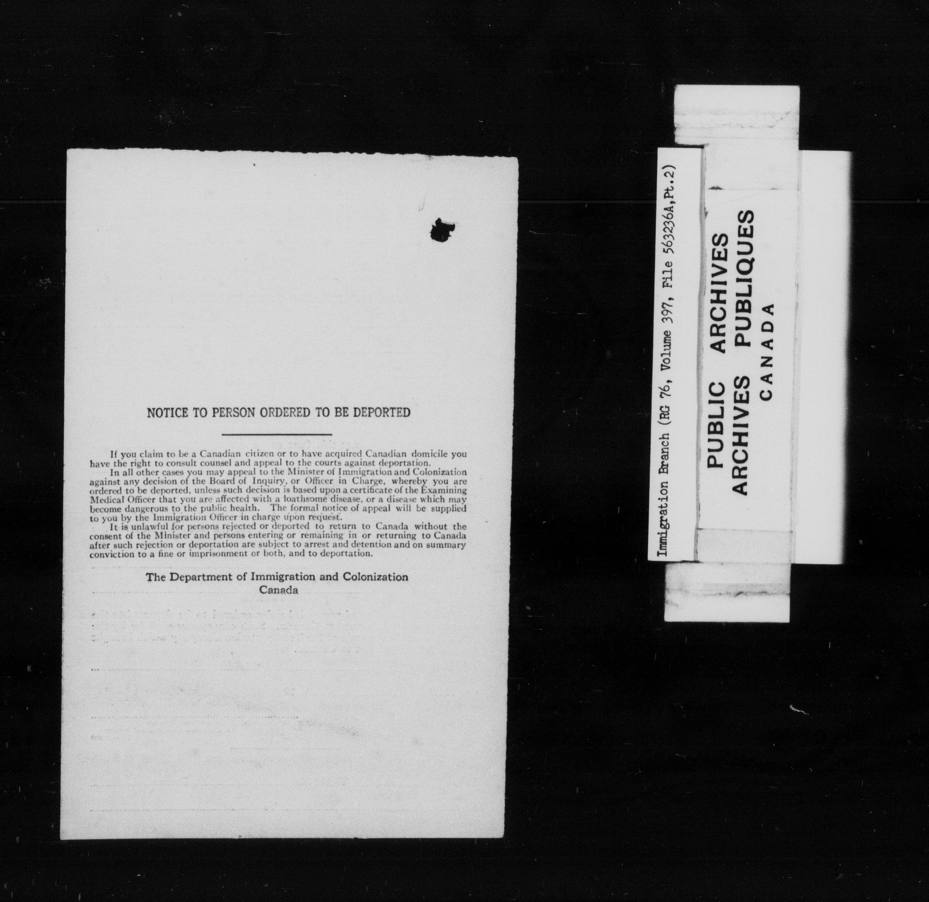 Subject, policy and case files in the First Central Registry series of the Immigration Program, 1892-1950 - 10288