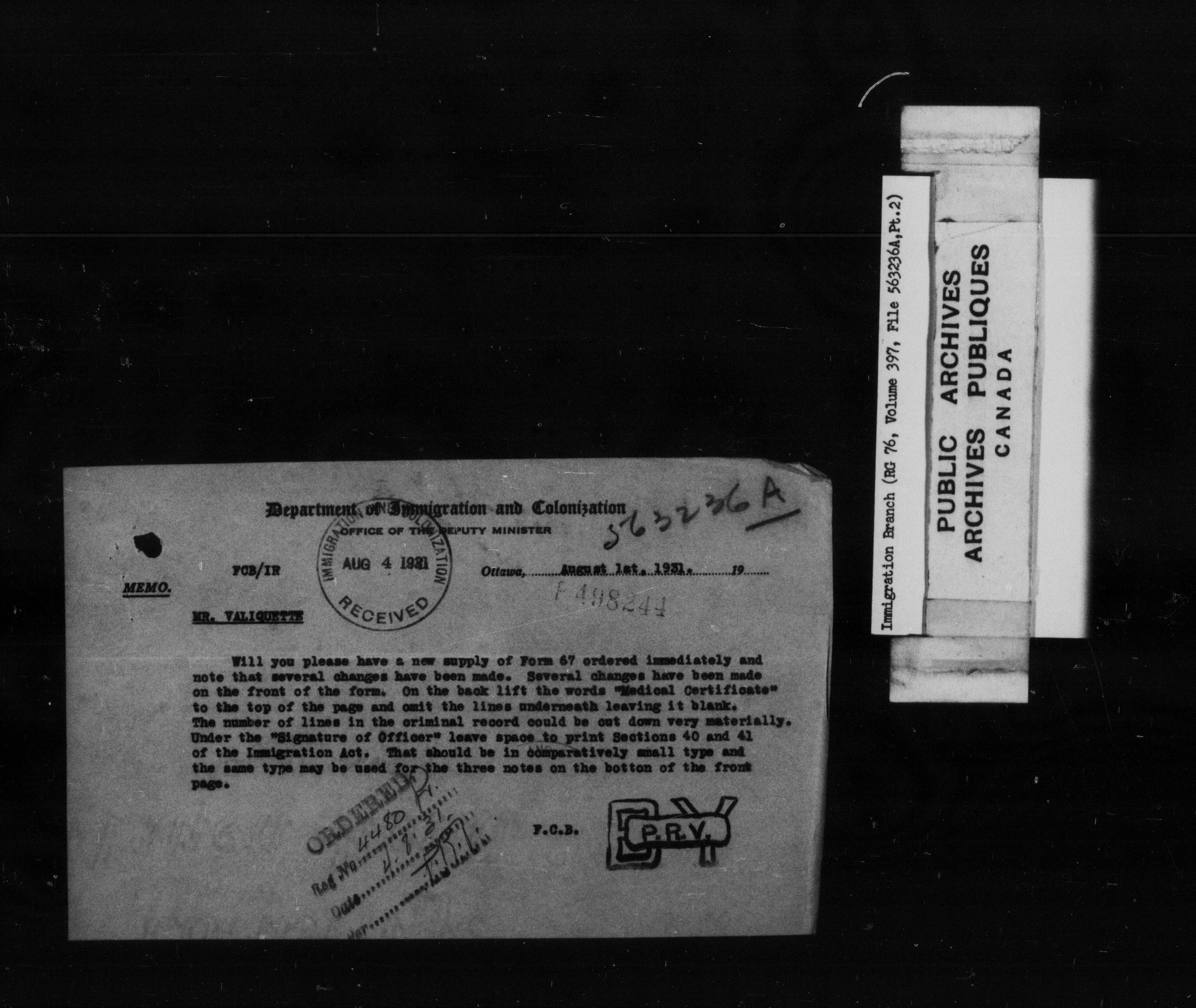 Subject, policy and case files in the First Central Registry series of the Immigration Program, 1892-1950 - 10288