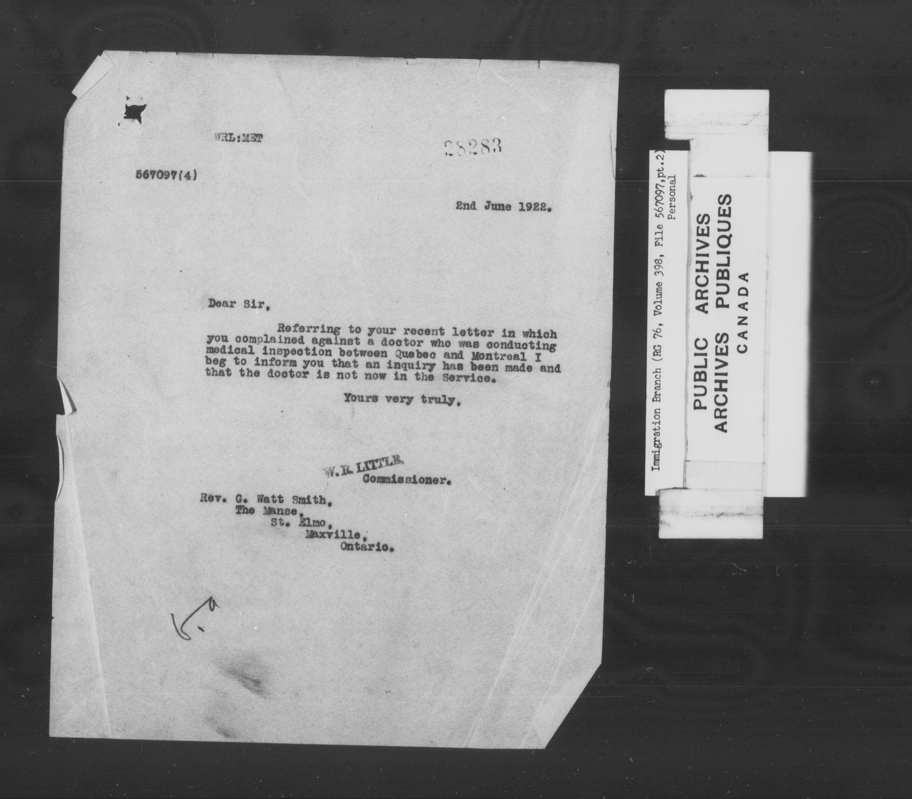Subject, policy and case files in the First Central Registry series of the Immigration Program, 1892-1950 - 10290