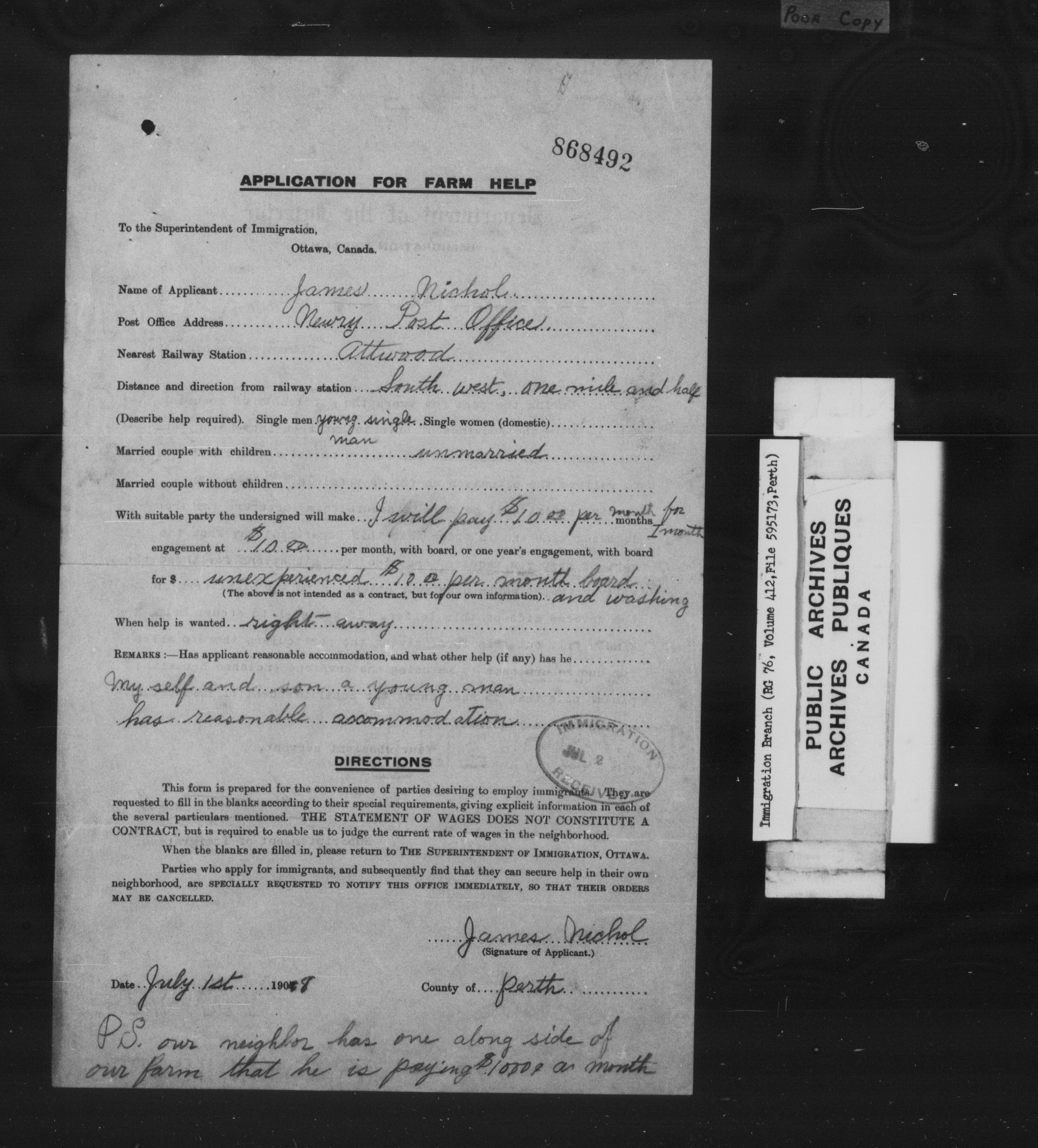 Subject, policy and case files in the First Central Registry series of the Immigration Program, 1892-1950 - 10299