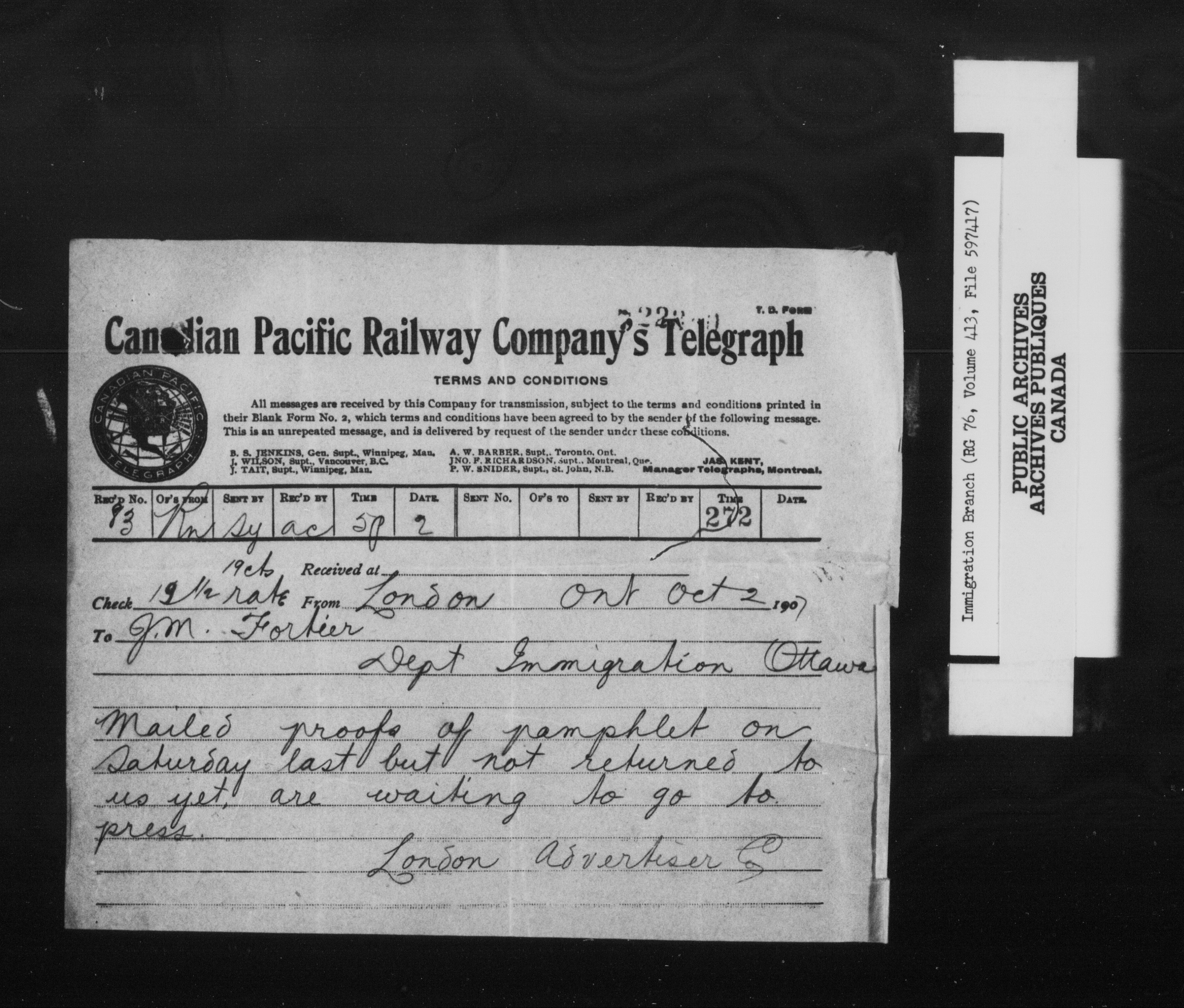 Subject, policy and case files in the First Central Registry series of the Immigration Program, 1892-1950 - 10301