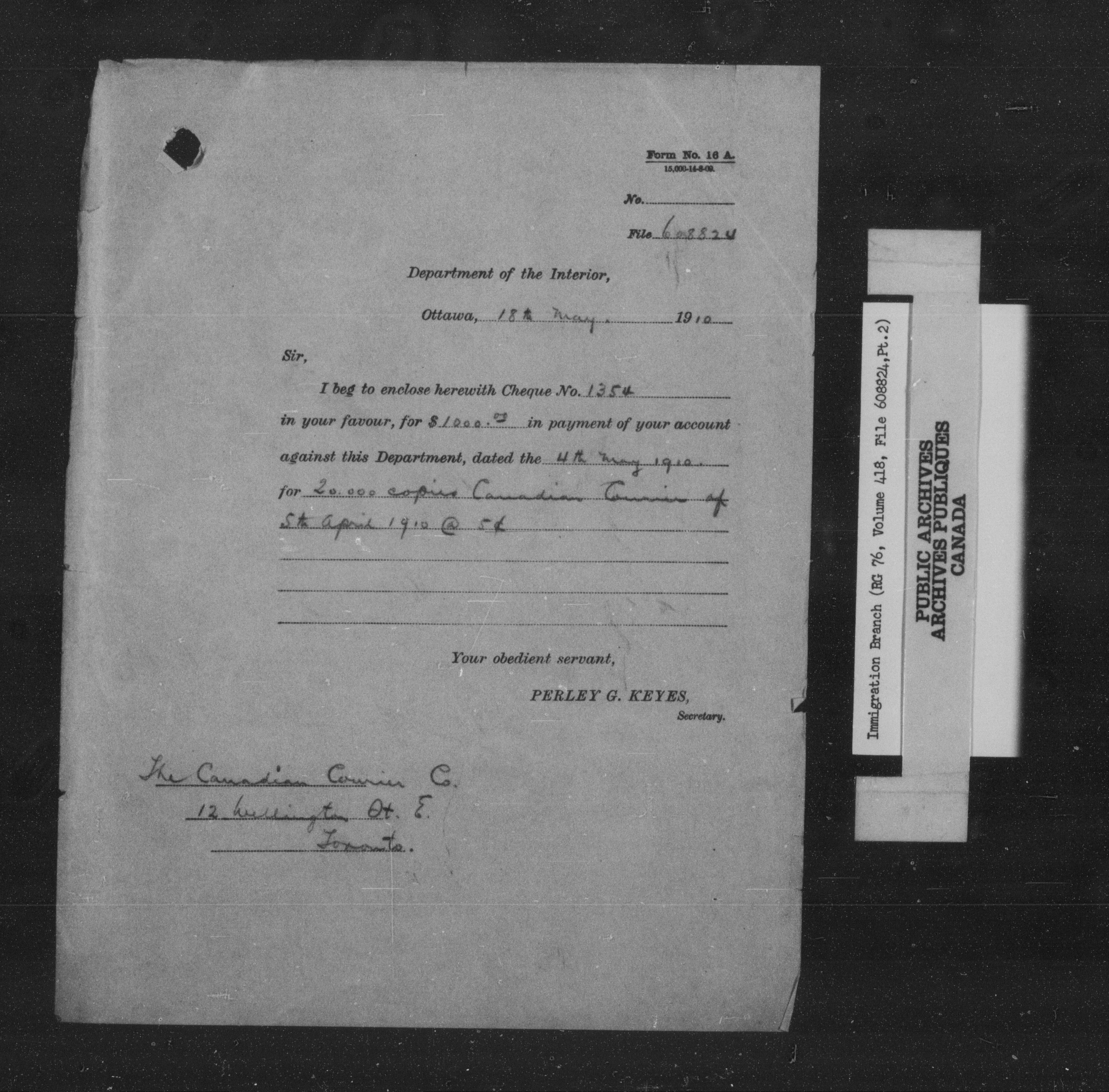 Subject, policy and case files in the First Central Registry series of the Immigration Program, 1892-1950 - 10303