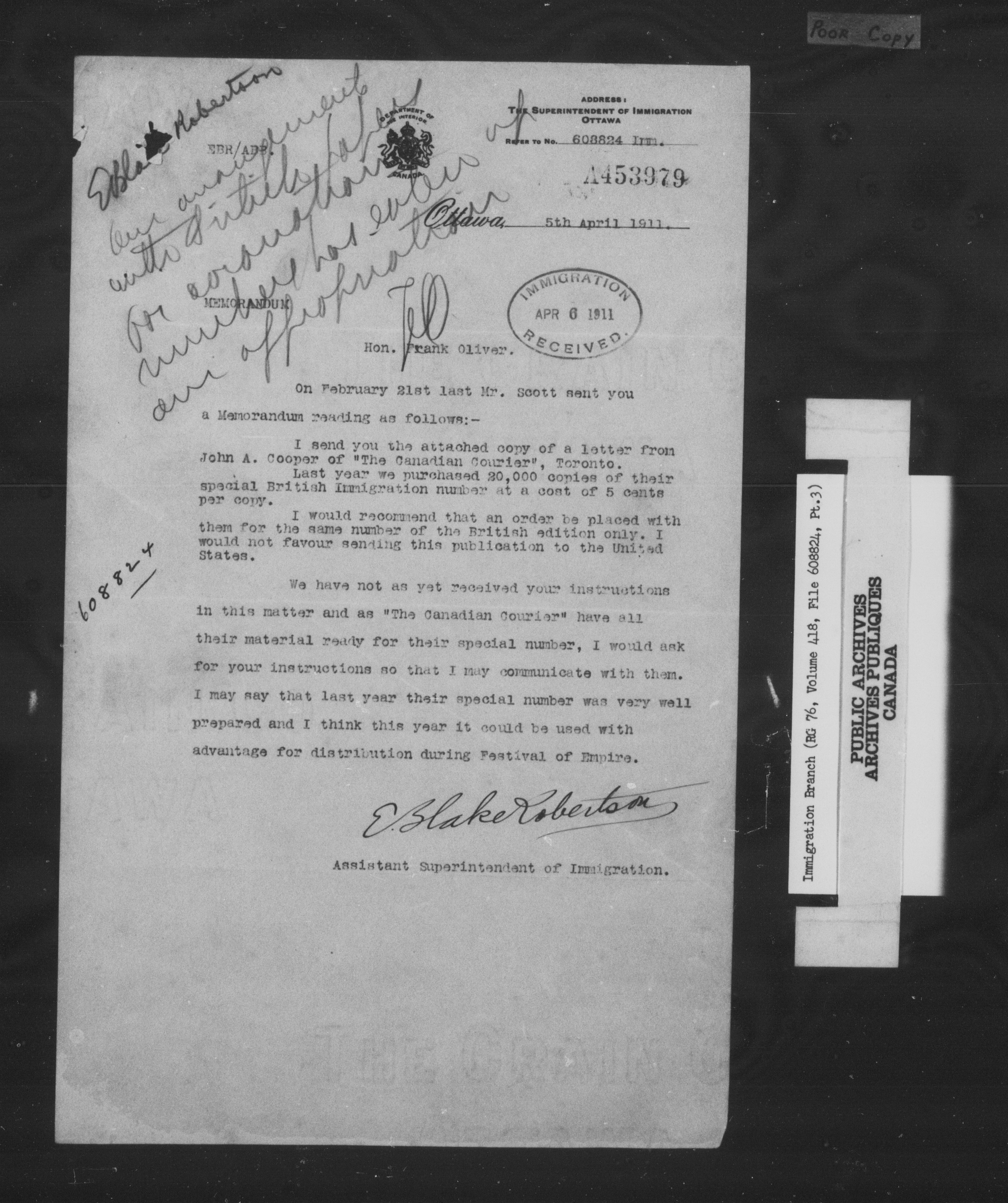 Subject, policy and case files in the First Central Registry series of the Immigration Program, 1892-1950 - 10304