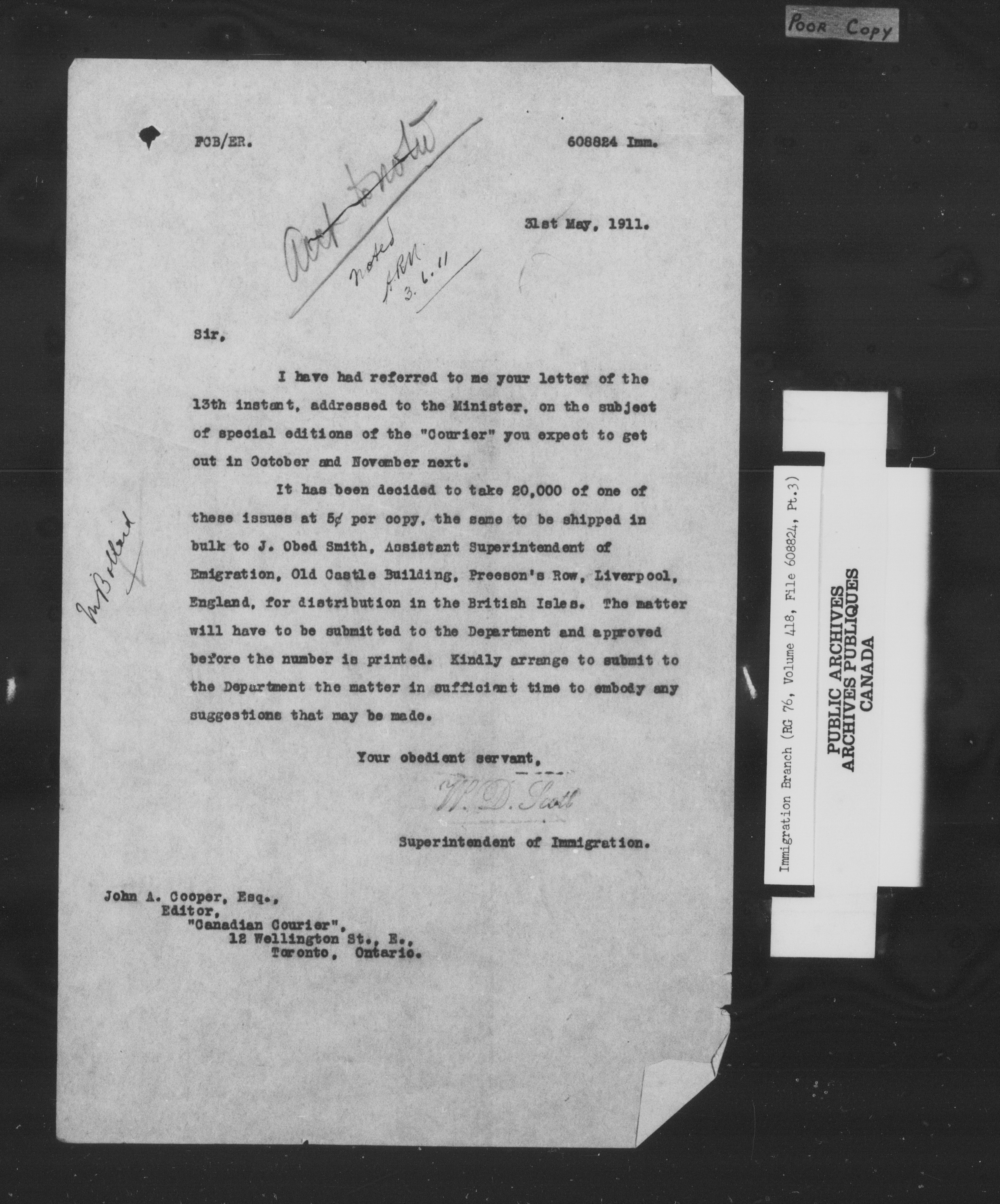 Subject, policy and case files in the First Central Registry series of the Immigration Program, 1892-1950 - 10304