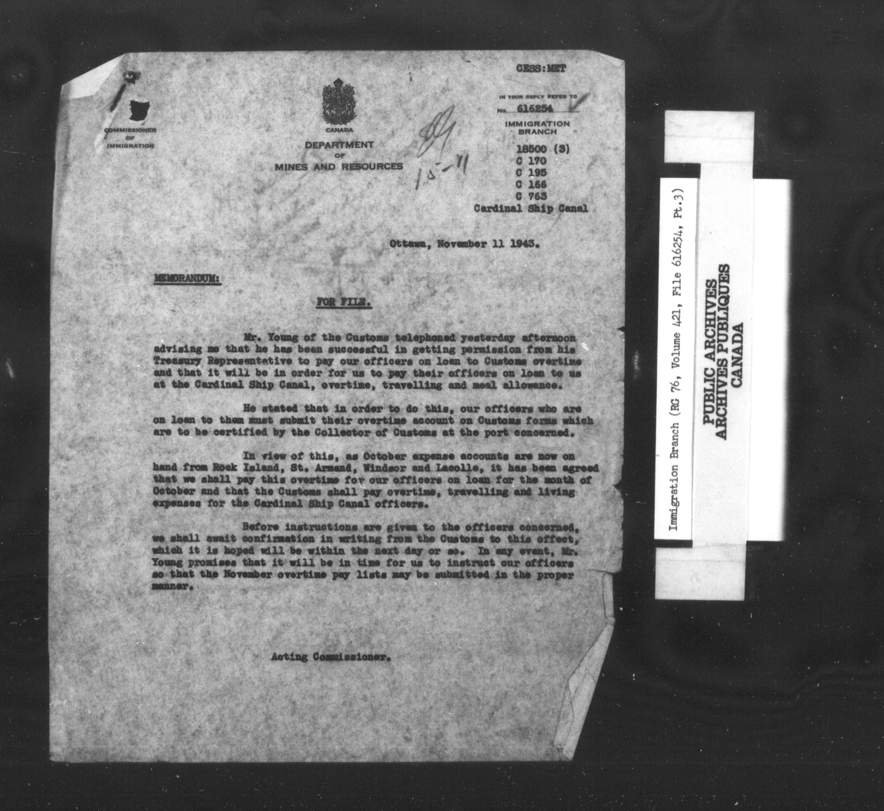 Subject, policy and case files in the First Central Registry series of the Immigration Program, 1892-1950 - 10306