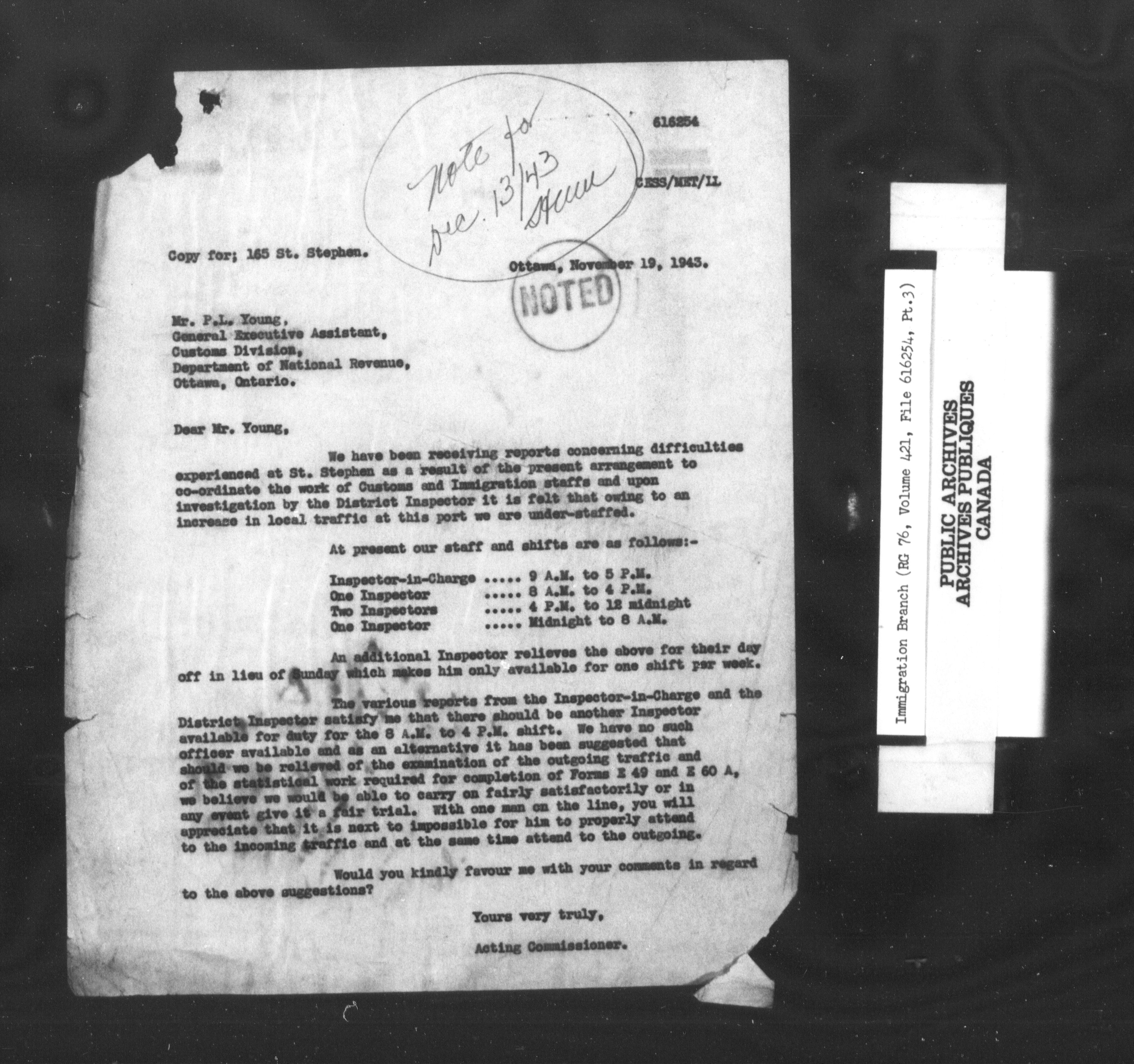 Subject, policy and case files in the First Central Registry series of the Immigration Program, 1892-1950 - 10306