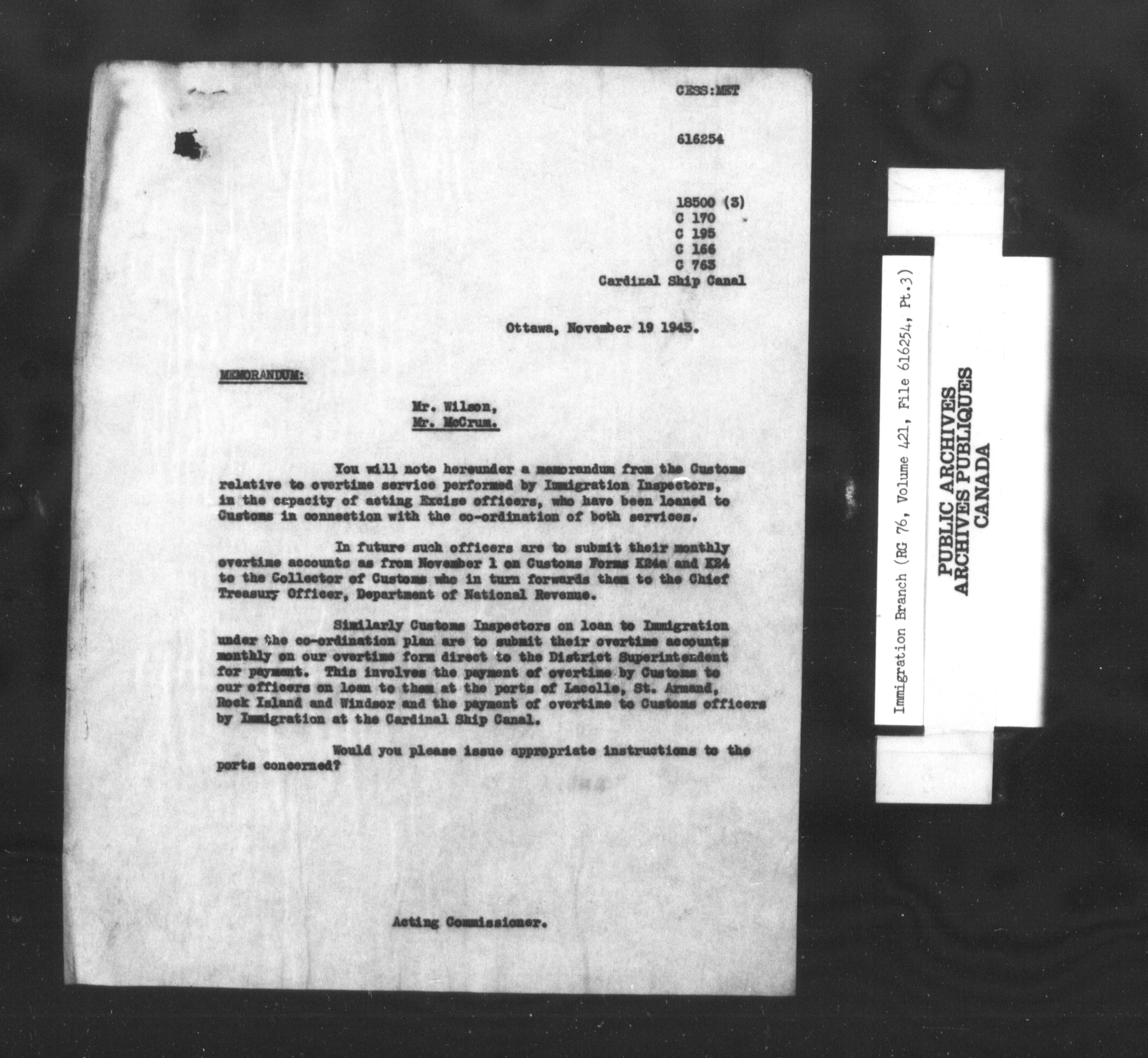 Subject, policy and case files in the First Central Registry series of the Immigration Program, 1892-1950 - 10306
