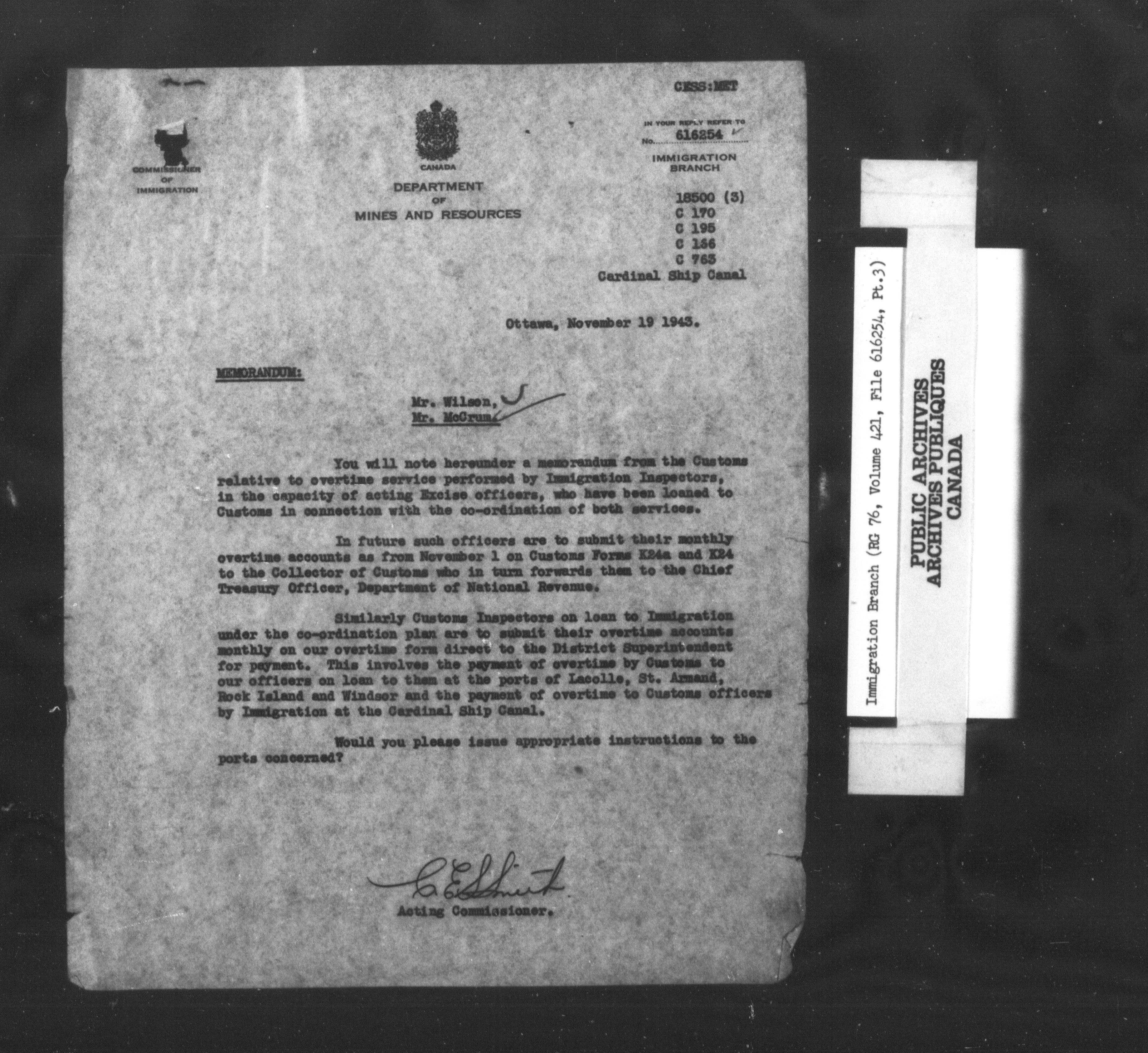 Subject, policy and case files in the First Central Registry series of the Immigration Program, 1892-1950 - 10306