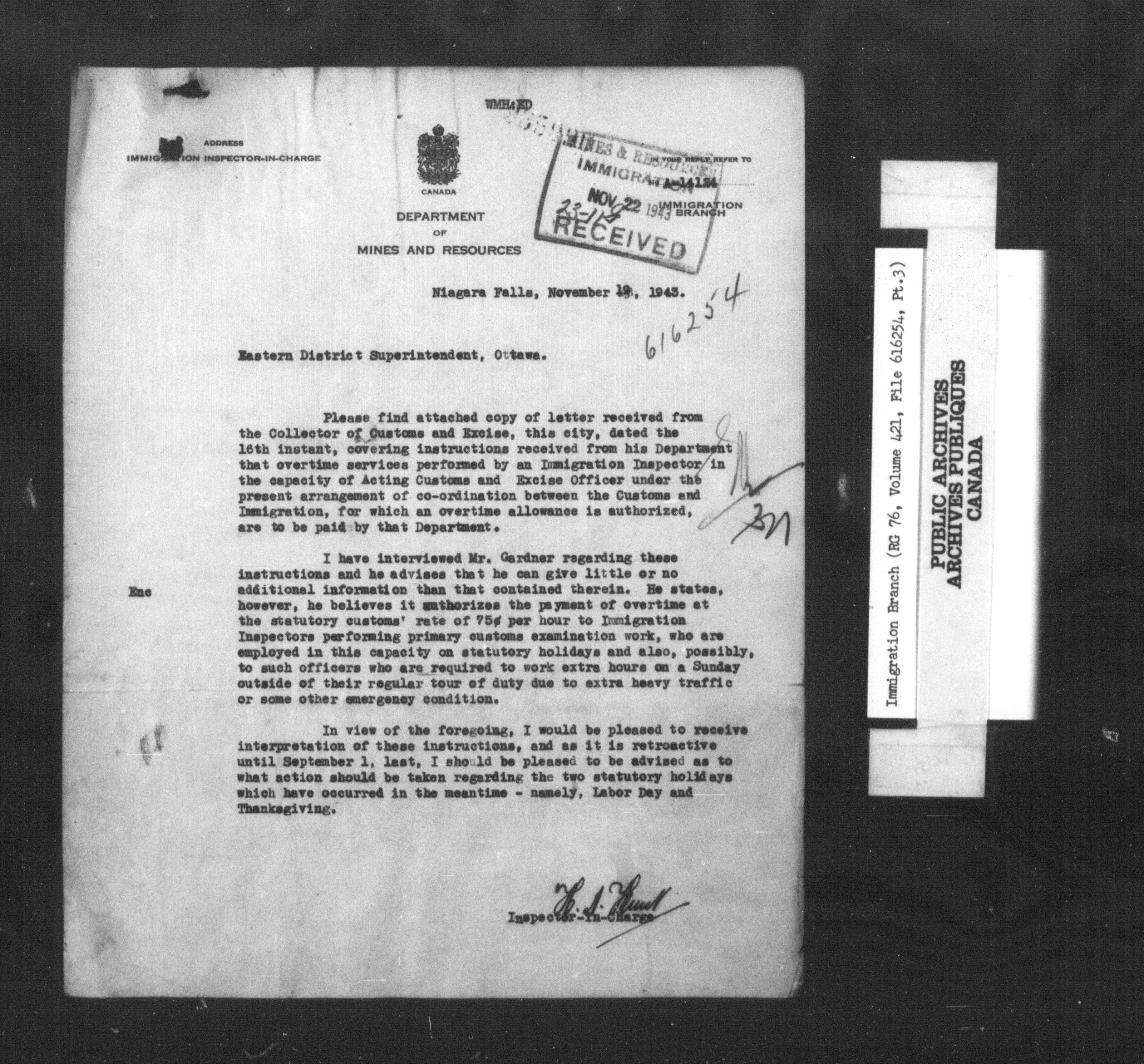Subject, policy and case files in the First Central Registry series of the Immigration Program, 1892-1950 - 10306