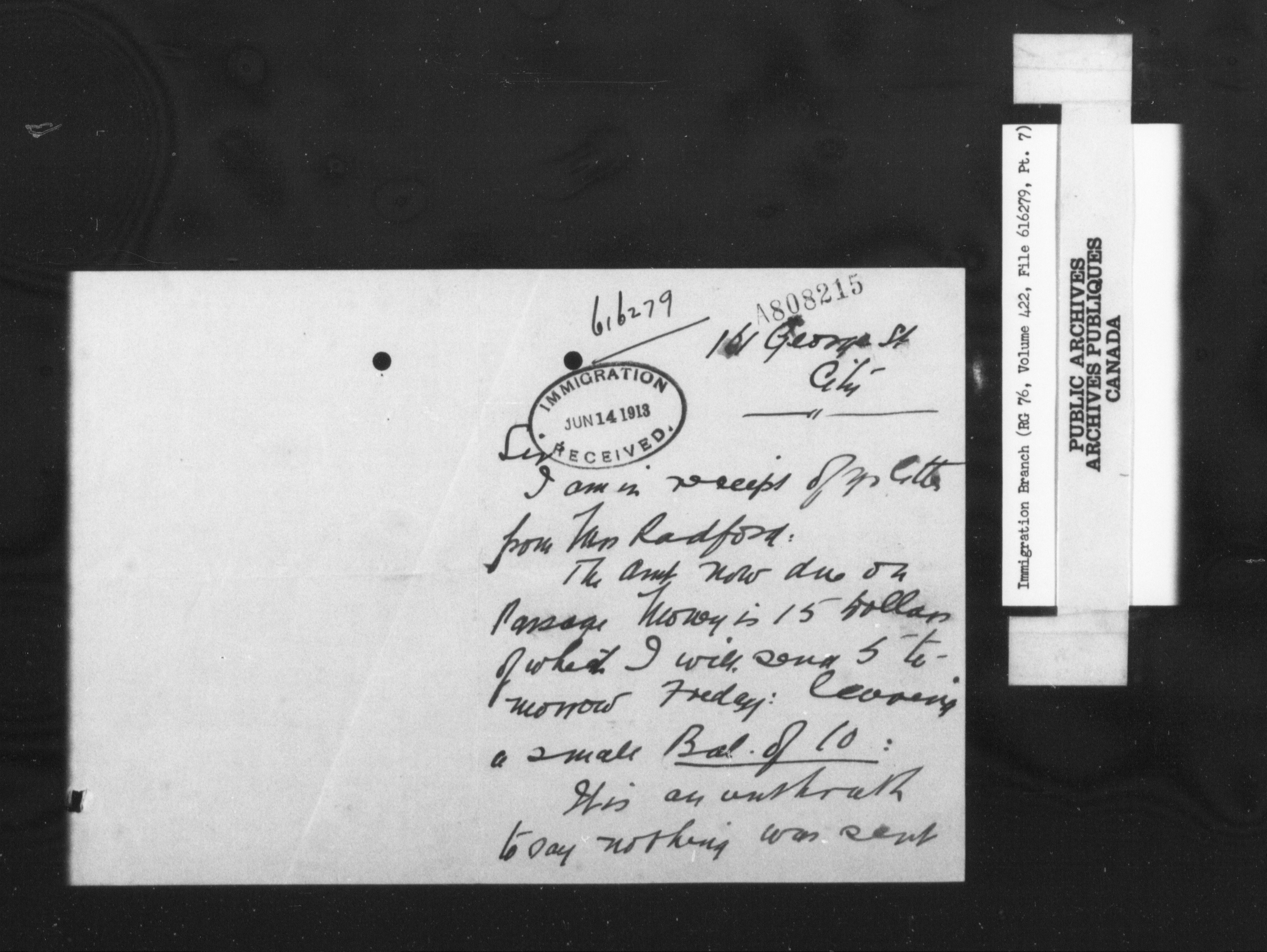 Subject, policy and case files in the First Central Registry series of the Immigration Program, 1892-1950 - 10307