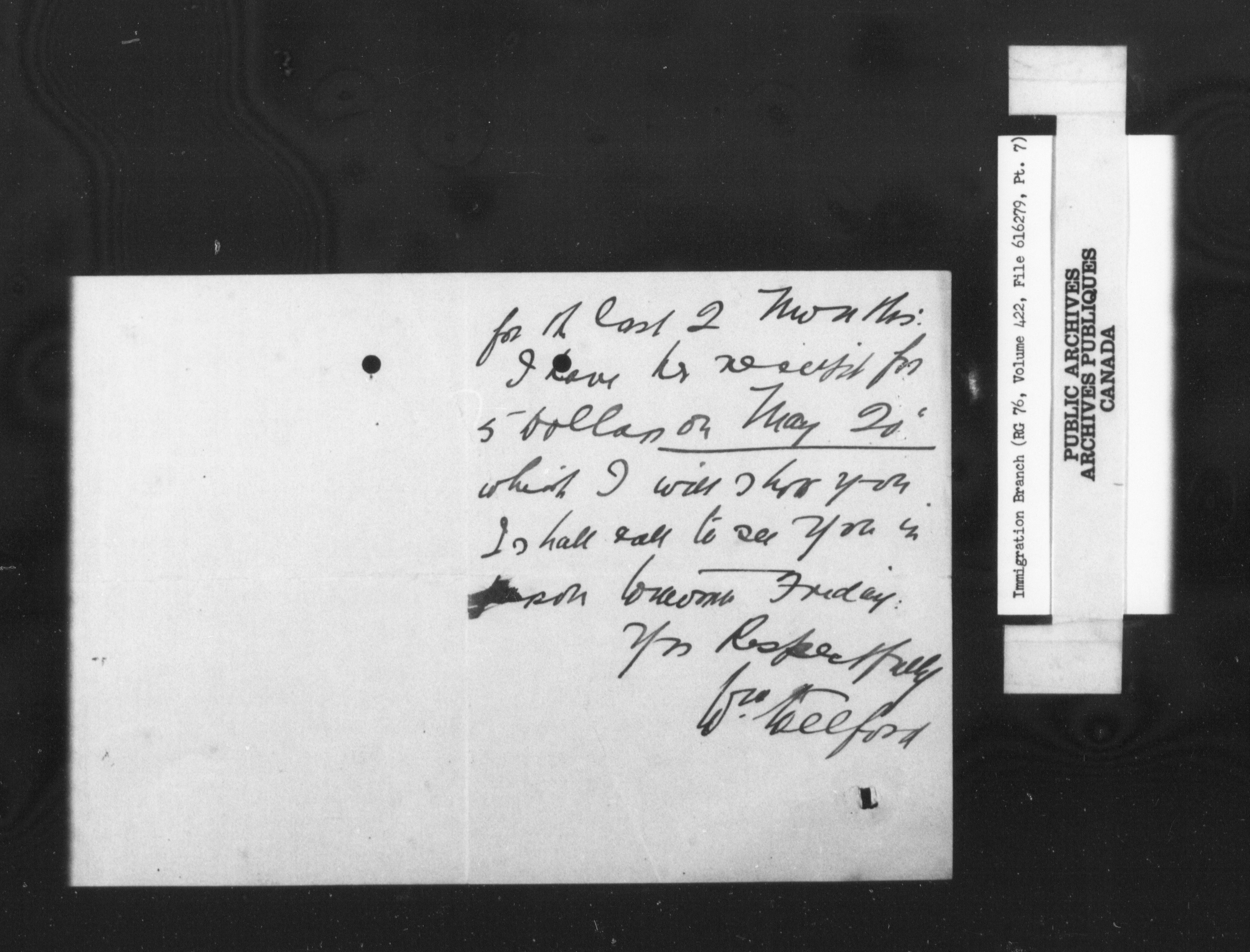 Subject, policy and case files in the First Central Registry series of the Immigration Program, 1892-1950 - 10307