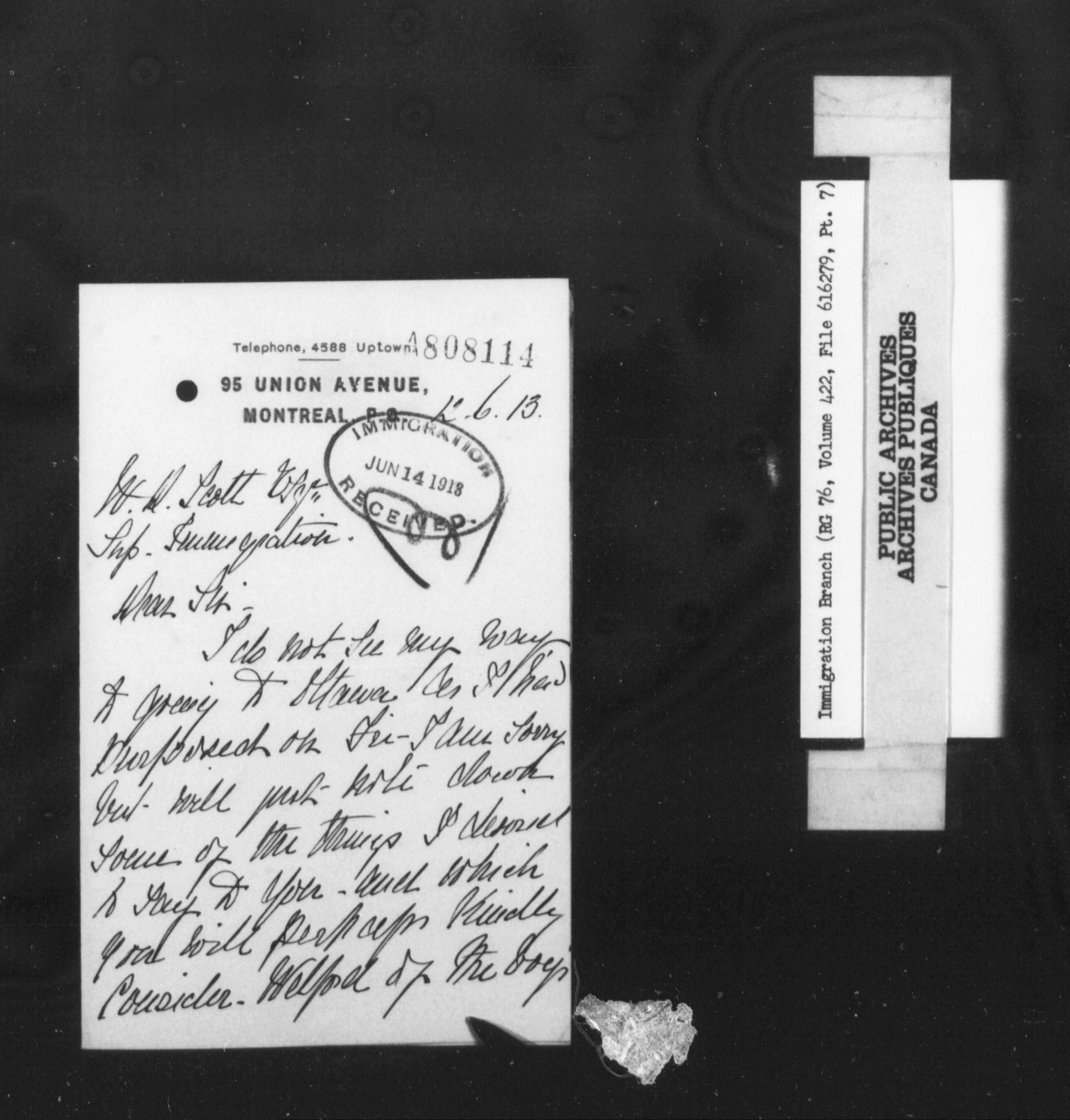Subject, policy and case files in the First Central Registry series of the Immigration Program, 1892-1950 - 10307